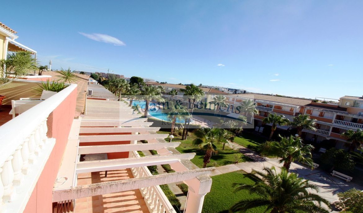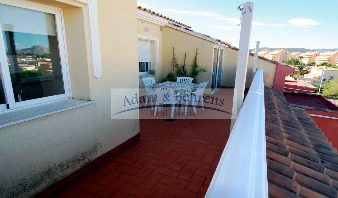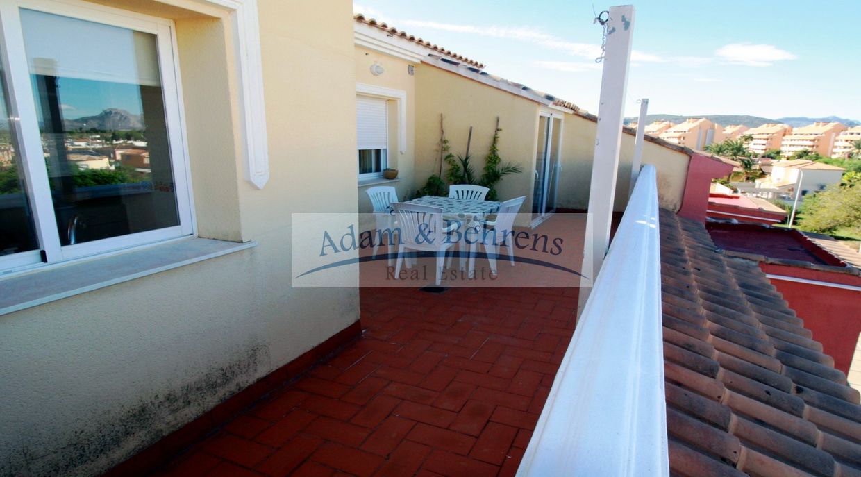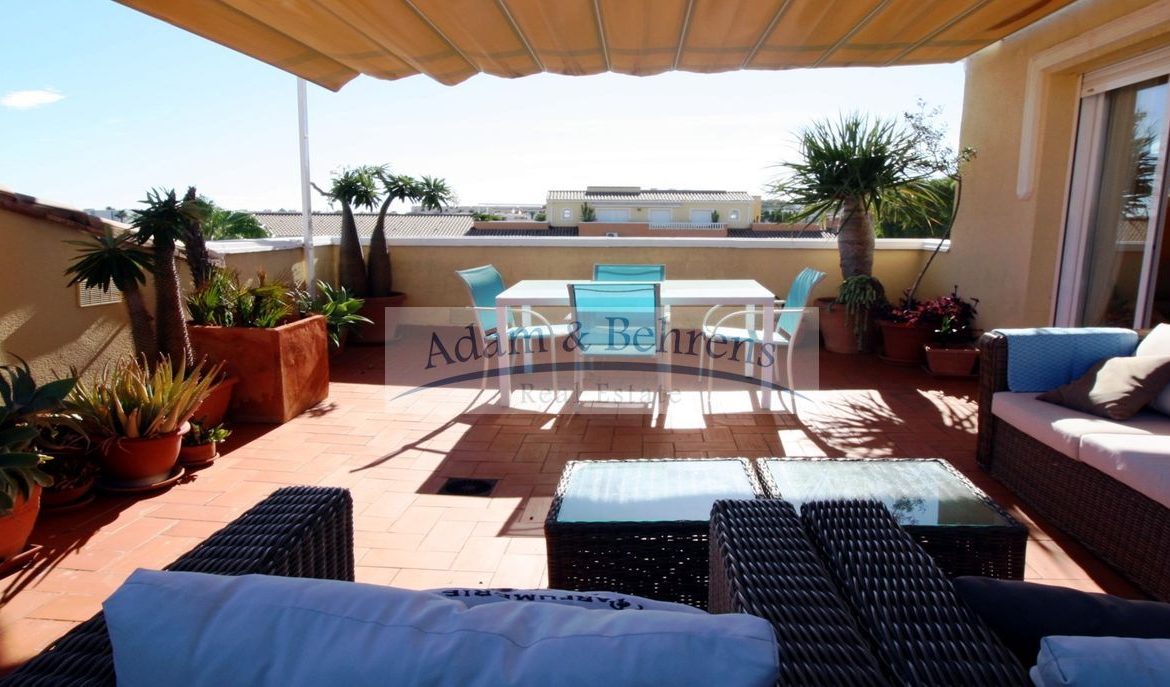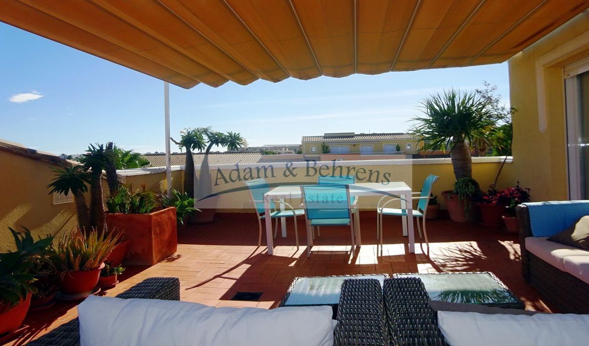El «Atico Cuatro Soles» es una absoluta rareza entre las propiedades que se ofrecen en la zona de Denia. Un total de cuatro terrazas garantizan que pueda disfrutar del sol o de la sombra, de las vistas a las montañas o de la amplia zona comunitaria con piscina en cualquier momento. Desde la terraza principal también se puede ver el mar.