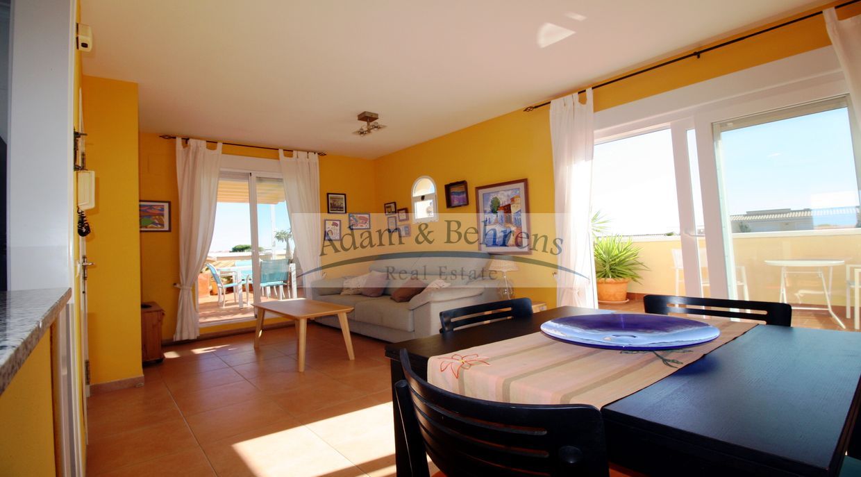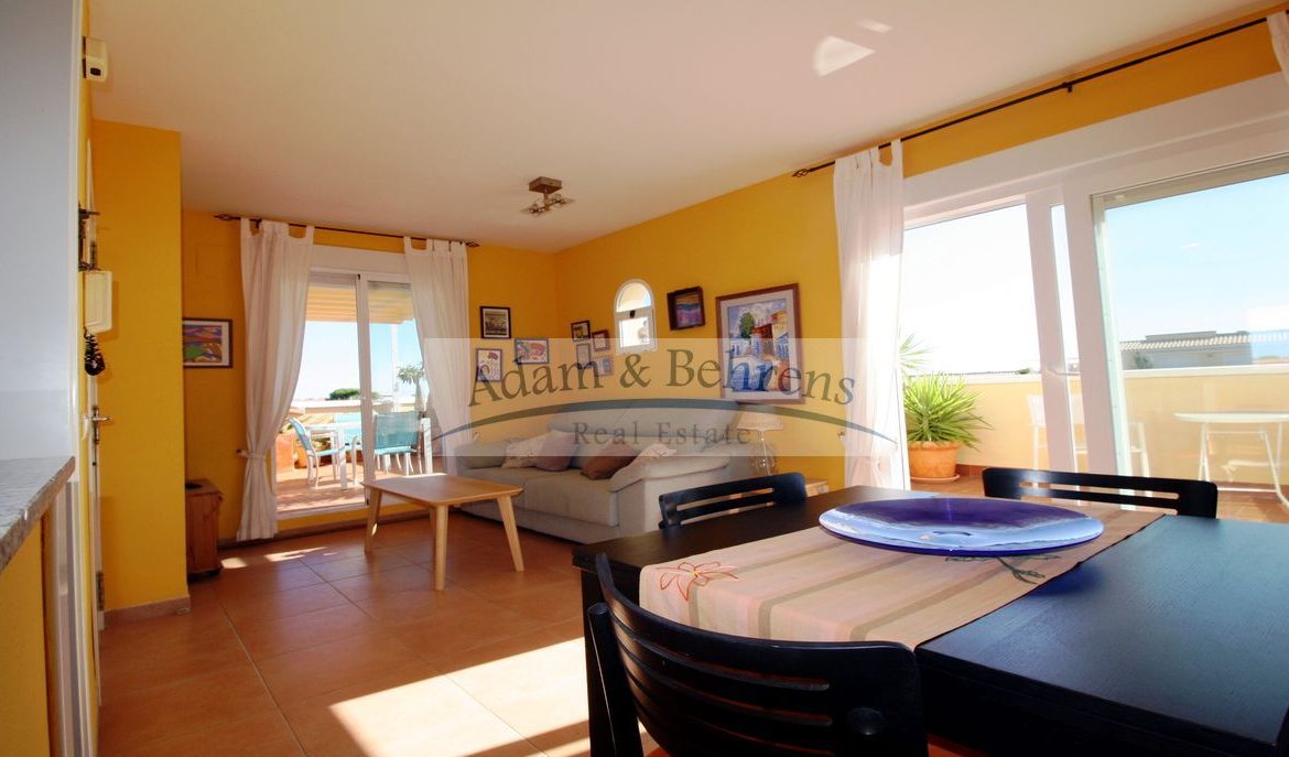 El «Atico Cuatro Soles» es un verdadero ático ya que se construyó solo en la azotea y está en muy buen estado. Es adecuado para uso propio como residencia principal o piso de vacaciones, así como para alquiler vacacional. Suelos de baldosas, ventanas de aluminio con doble acristalamiento, aire acondicionado y una cochera privada directamente delante de la puerta principal subrayan las buenas instalaciones.