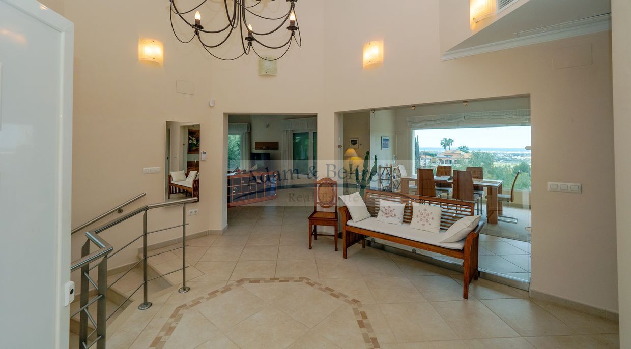 Las vistas panorámicas al campo de golf y al mar Mediterráneo proporcionan el telón de fondo perfecto para esta exquisita propiedad. Para mayor comodidad y seguridad, la casa está equipada con un avanzado sistema de alarma. Muchos otros extras garantizan un nivel de vida de lujo y sin preocupaciones. Estos incluyen un ascensor privado a todas las plantas, amplias terrazas - parcialmente cubiertas, una gran cocina de verano cubierta en la terraza de la piscina, una bomba de calor reconectable para la piscina y mucho más.