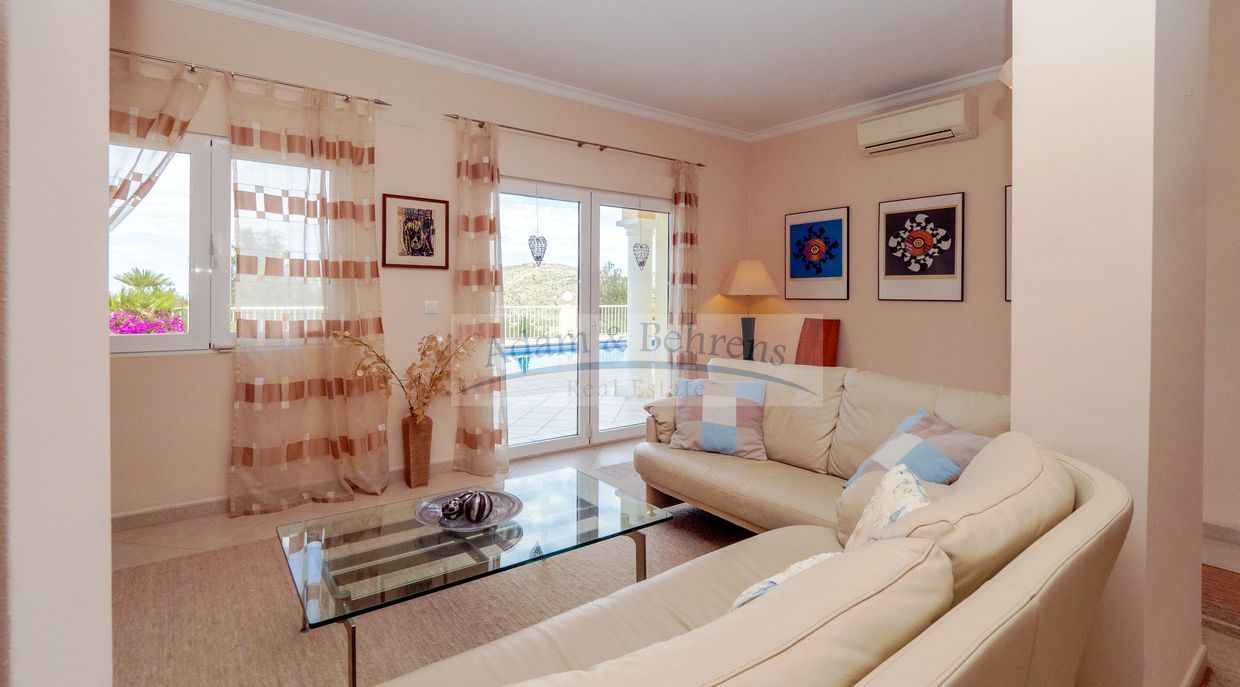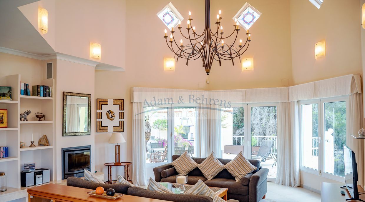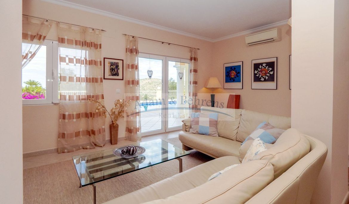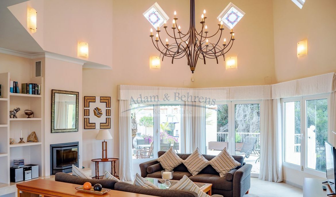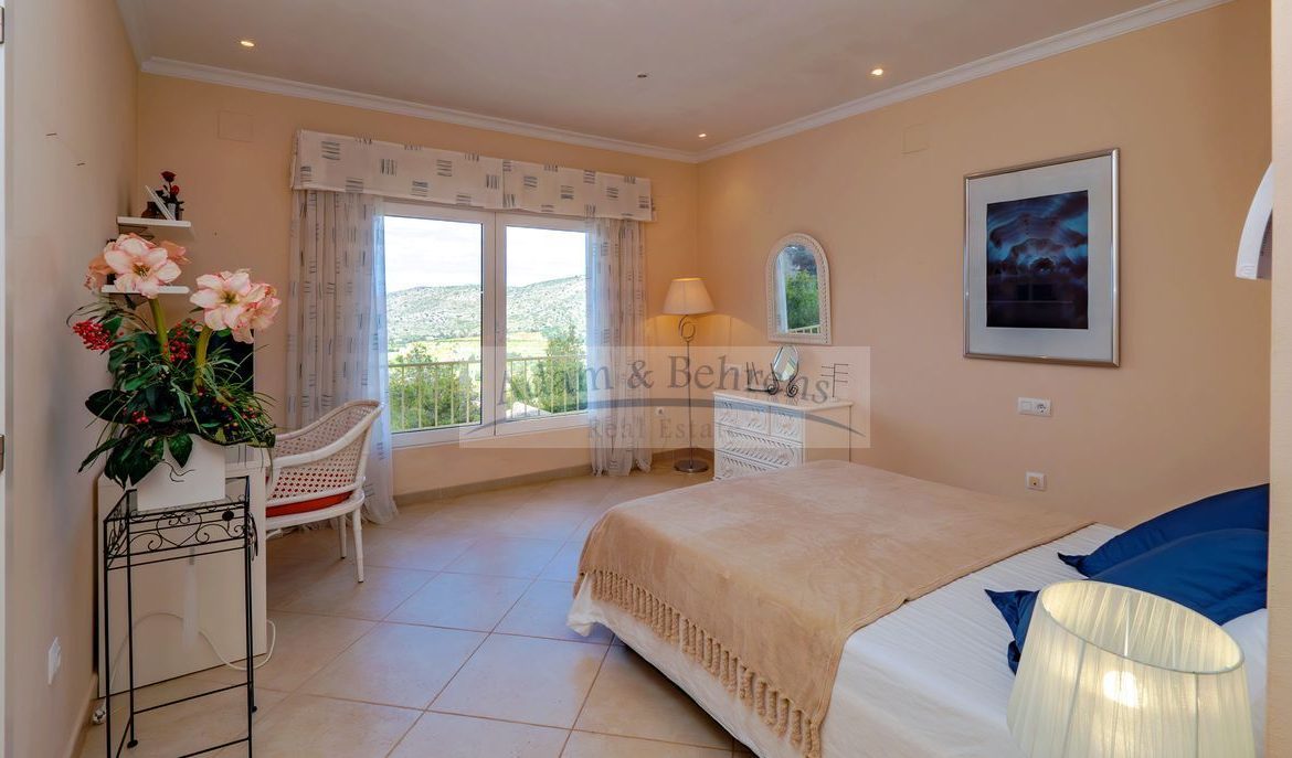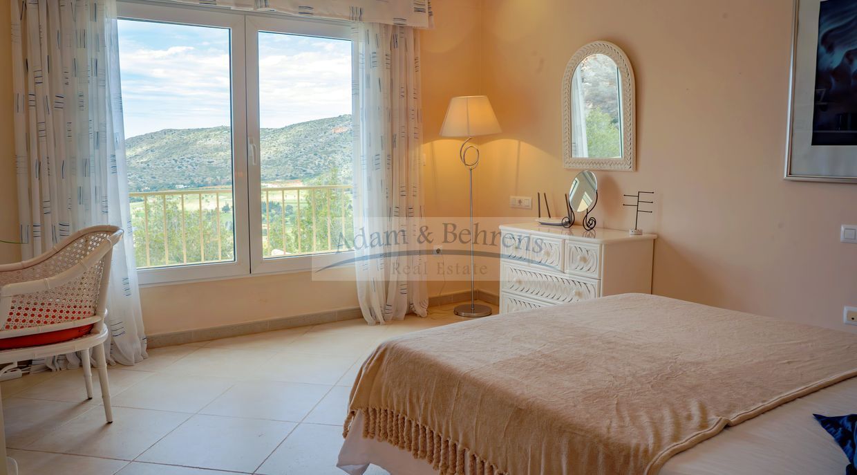 Lo más destacado de «Villa Jacinta» es sin duda la vista lejana sin obstáculos sobre la llanura, el campo de golf y el mar. Durante el día, el azul brillante del Mediterráneo brilla hacia usted y por la noche las luces de la costa brillan en un mar de luces.