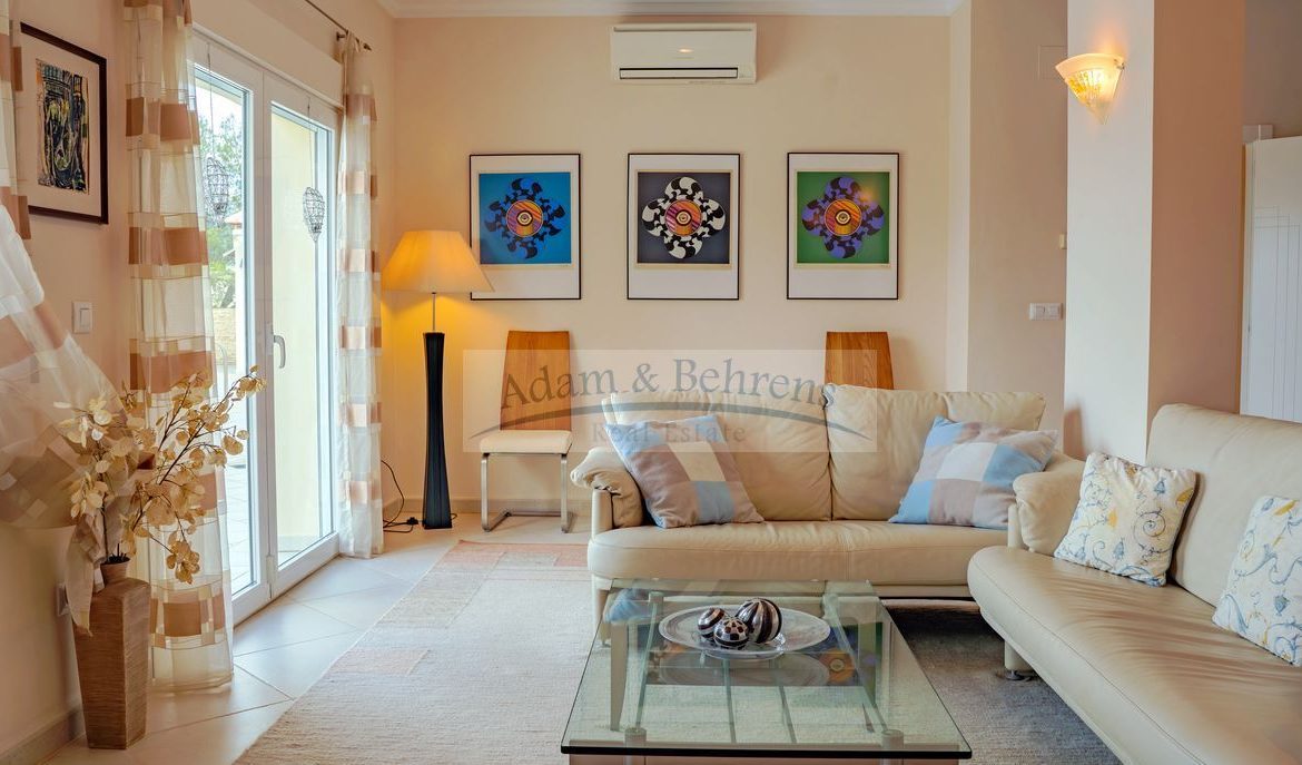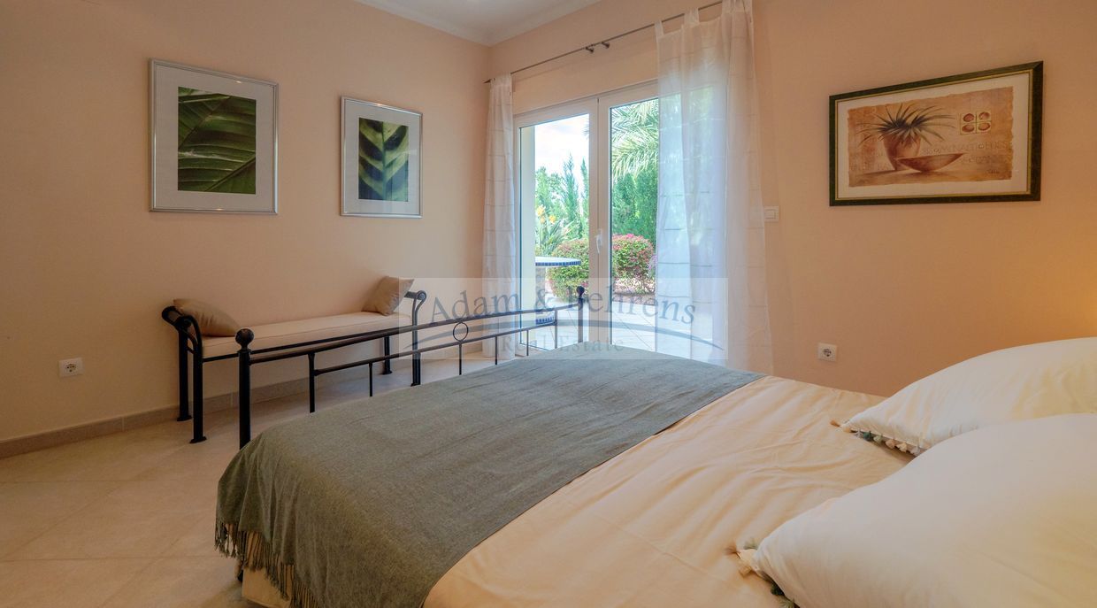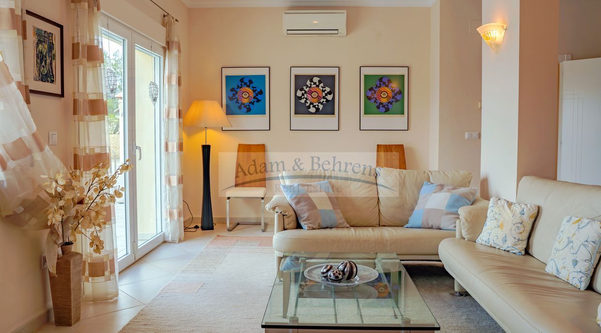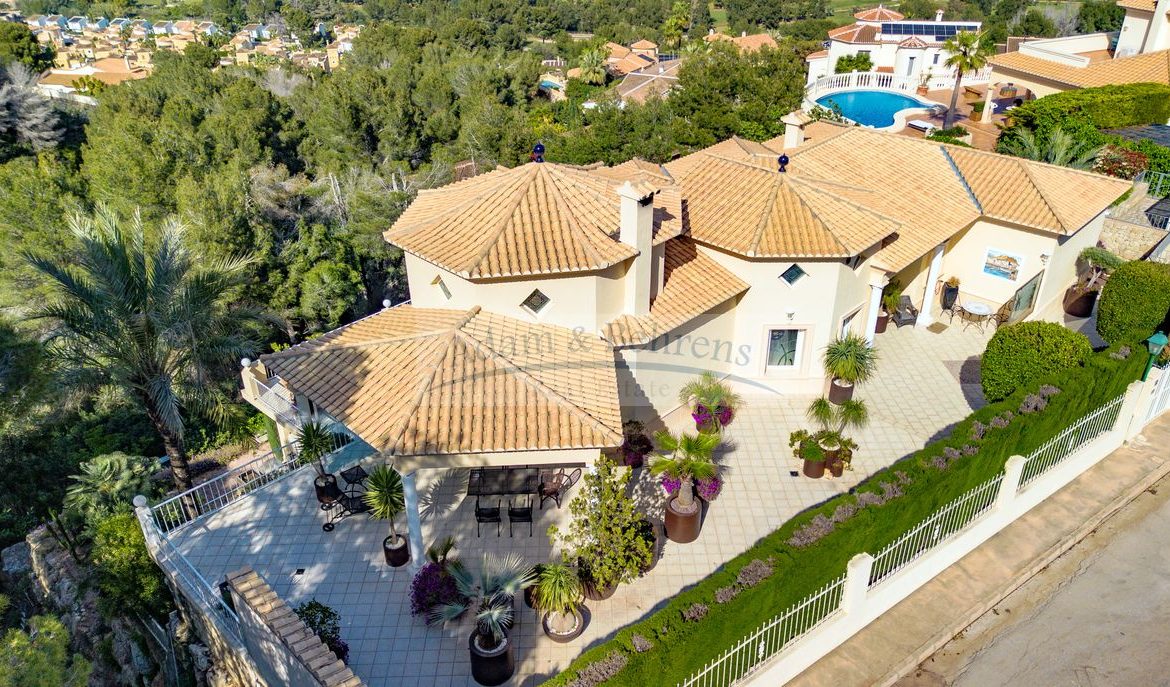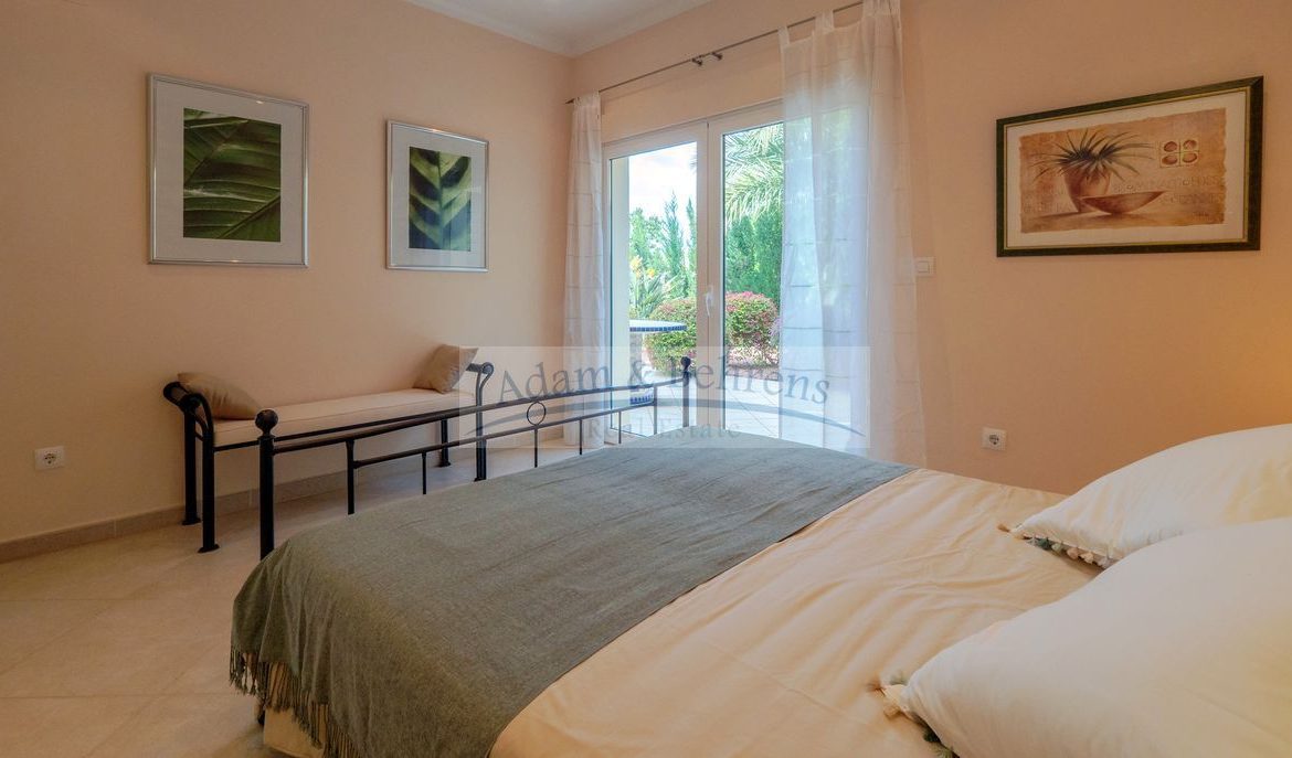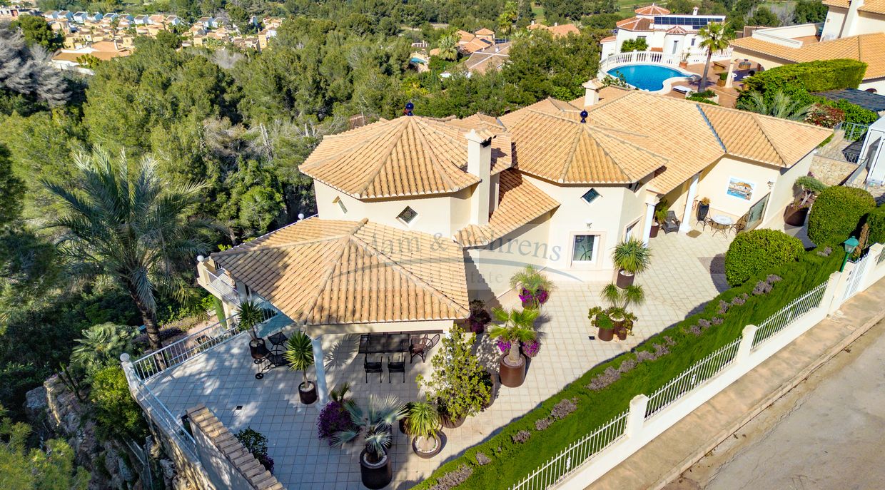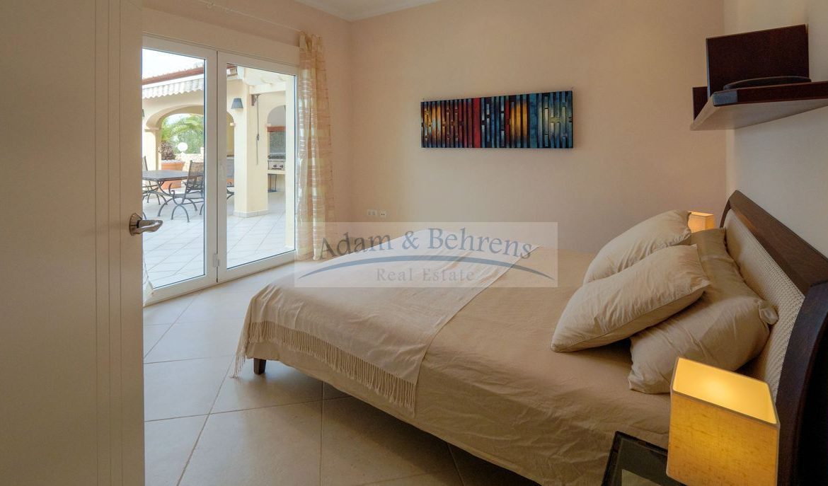 Lo más destacado de «Villa Jacinta» es sin duda la vista lejana sin obstáculos sobre la llanura, el campo de golf y el mar. Durante el día, el azul brillante del Mediterráneo brilla hacia usted y por la noche las luces de la costa brillan en un mar de luces.