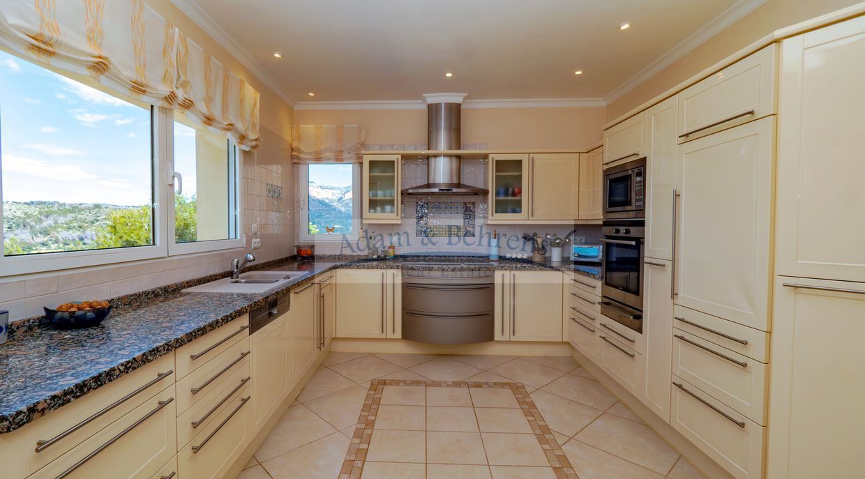 La pieza central de toda la zona de estar es la gran terraza orientada al sur, que está directamente conectada con la zona de estar. Además de una barbacoa, también ofrece mucho espacio para tomar el sol, una acogedora zona de estar cubierta y una amplia zona de comedor para usted y sus invitados con fantásticas vistas al valle y al mar. Aquí el sol está garantizado todo el año.