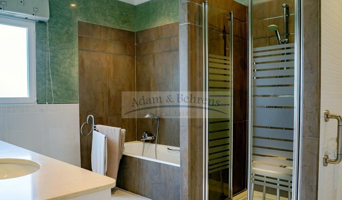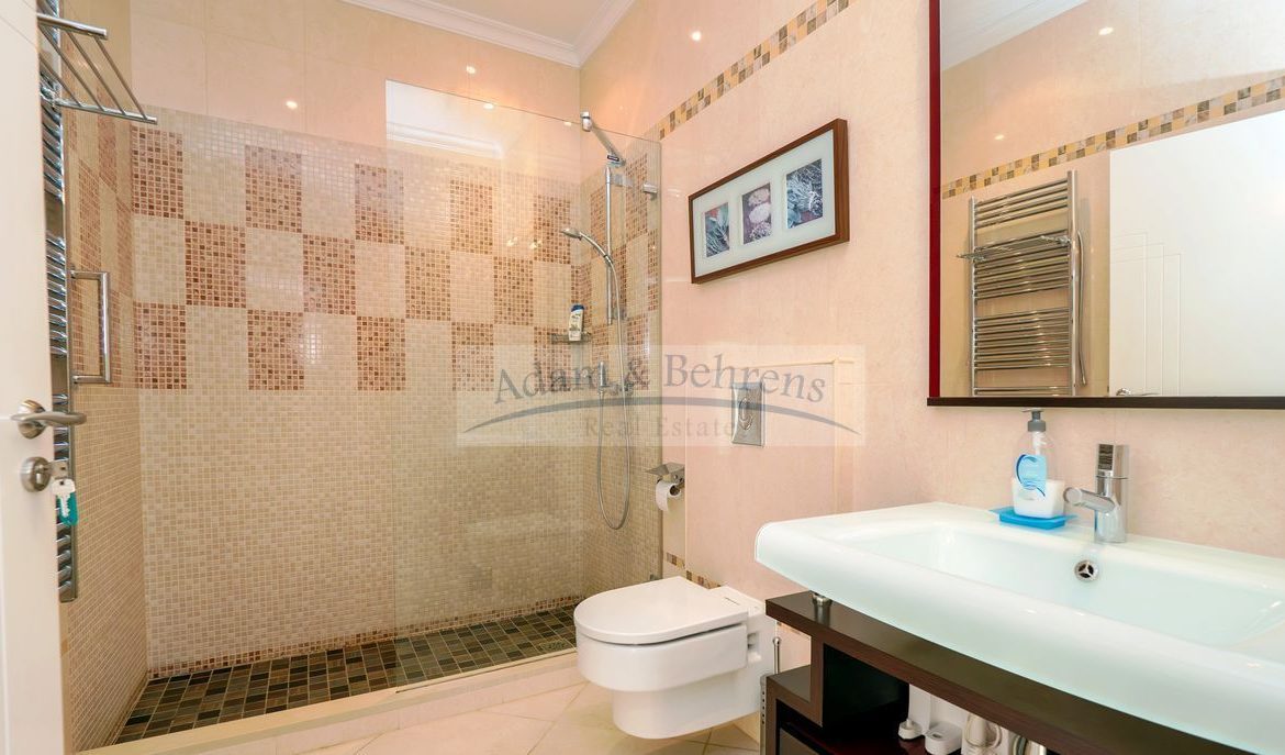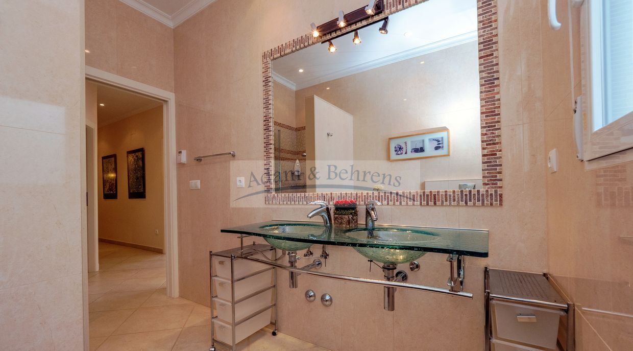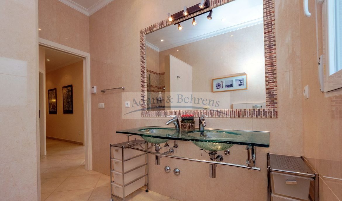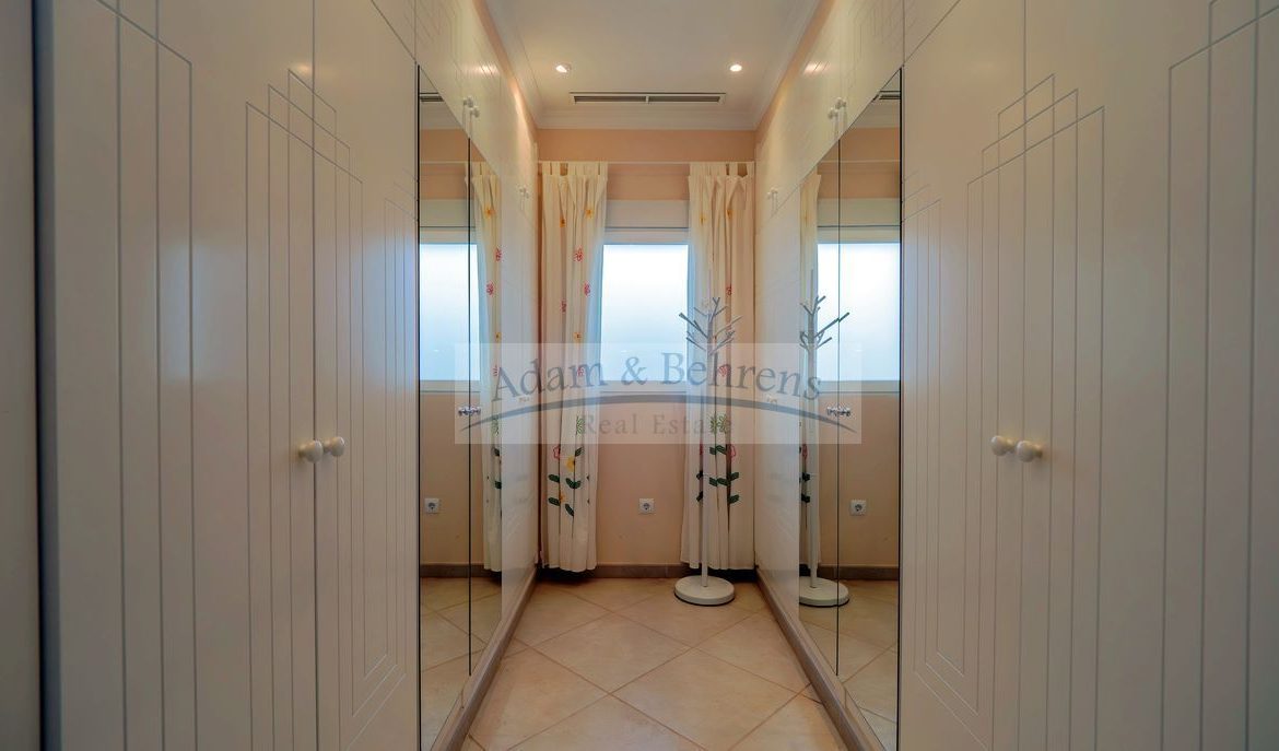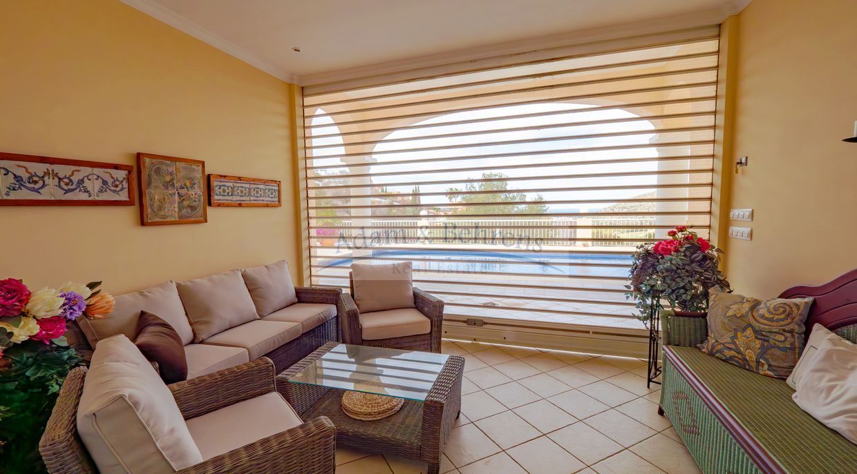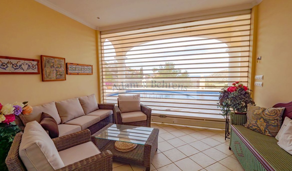 La propiedad inmaculadamente mantenido se distribuye en dos plantas y tiene su propio ascensor. El salón principal de «Villa Jacinta» está situado en una sola planta. Aquí encontrará una amplia y luminosa sala de estar con maravillosas vistas al mar, una cocina totalmente equipada con comedor contiguo, pasillo, un dormitorio con vestidor, un baño, aseo y lavadero que ofrece todas las comodidades imaginables.