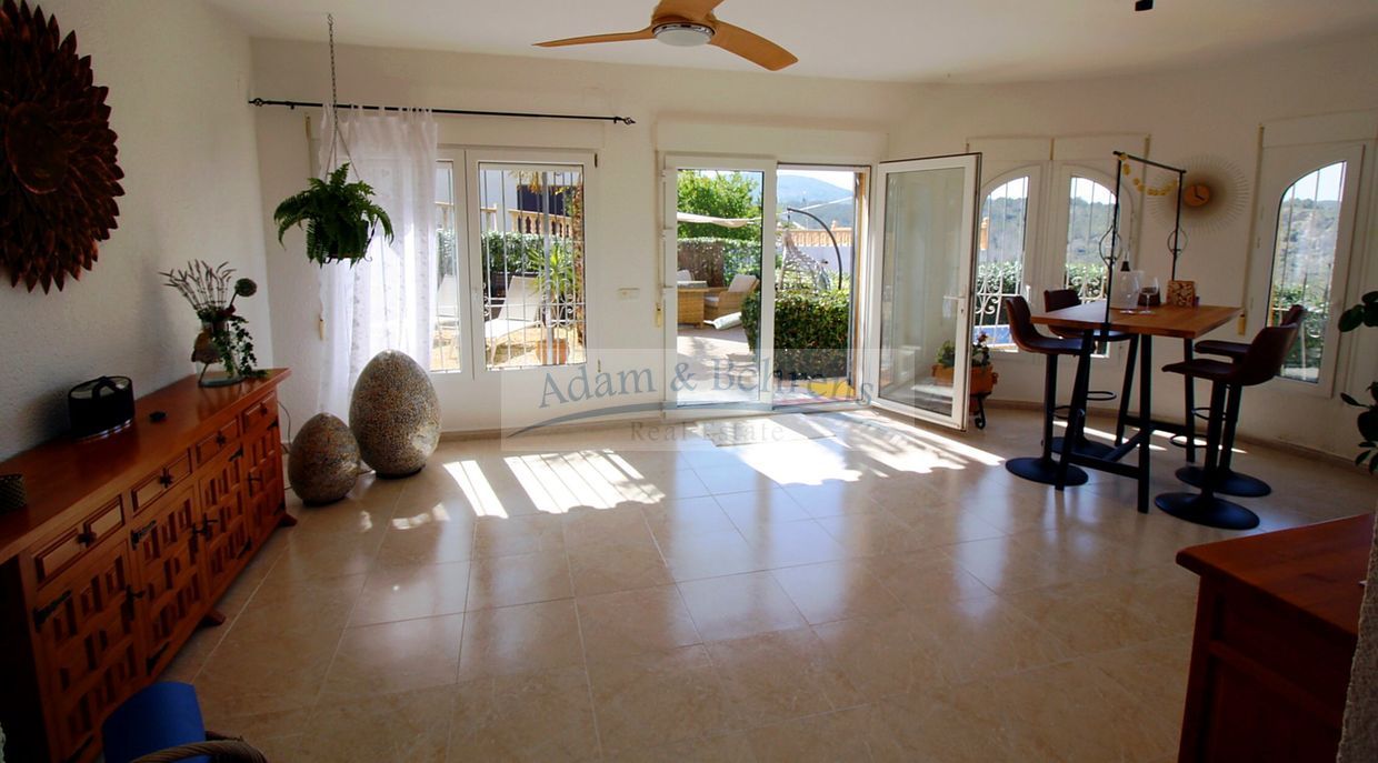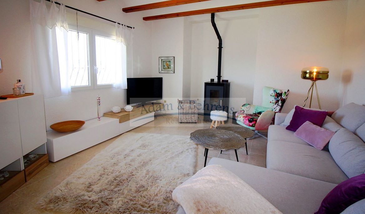 La «Villa la Lima» dispone de un total de tres dormitorios, un cuarto de baño, un invernadero y un acogedor salón-comedor en una sola planta. Relájese con una buena copa de vino español en invierno junto a la acogedora chimenea y disfrute de las fantásticas vistas en el desayuno por la mañana.