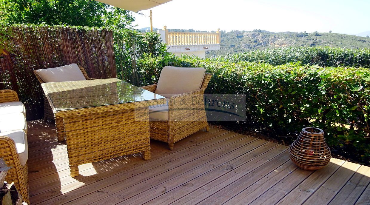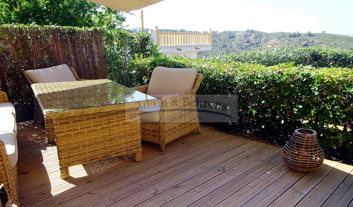 Auf der gleichen Ebene gelangen Sie auch zu einem gemütlichen Freisitz und Lounge Bereich, von dem aus Sie abends die schillernden Lichter der Küste in die Nacht entführt und Sie das mediterrane Klima der Costa Blanca in vollen Zügen genießen können.