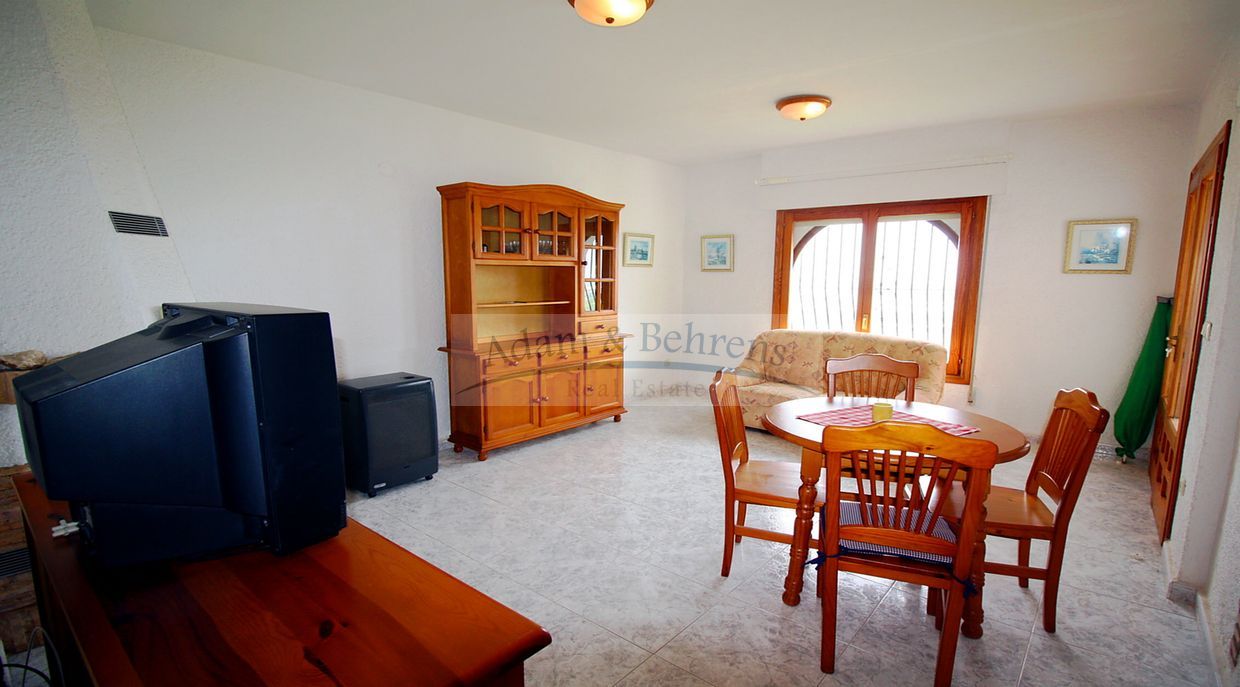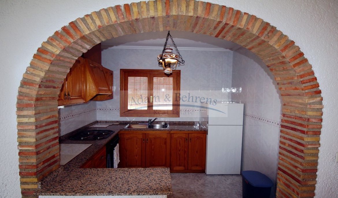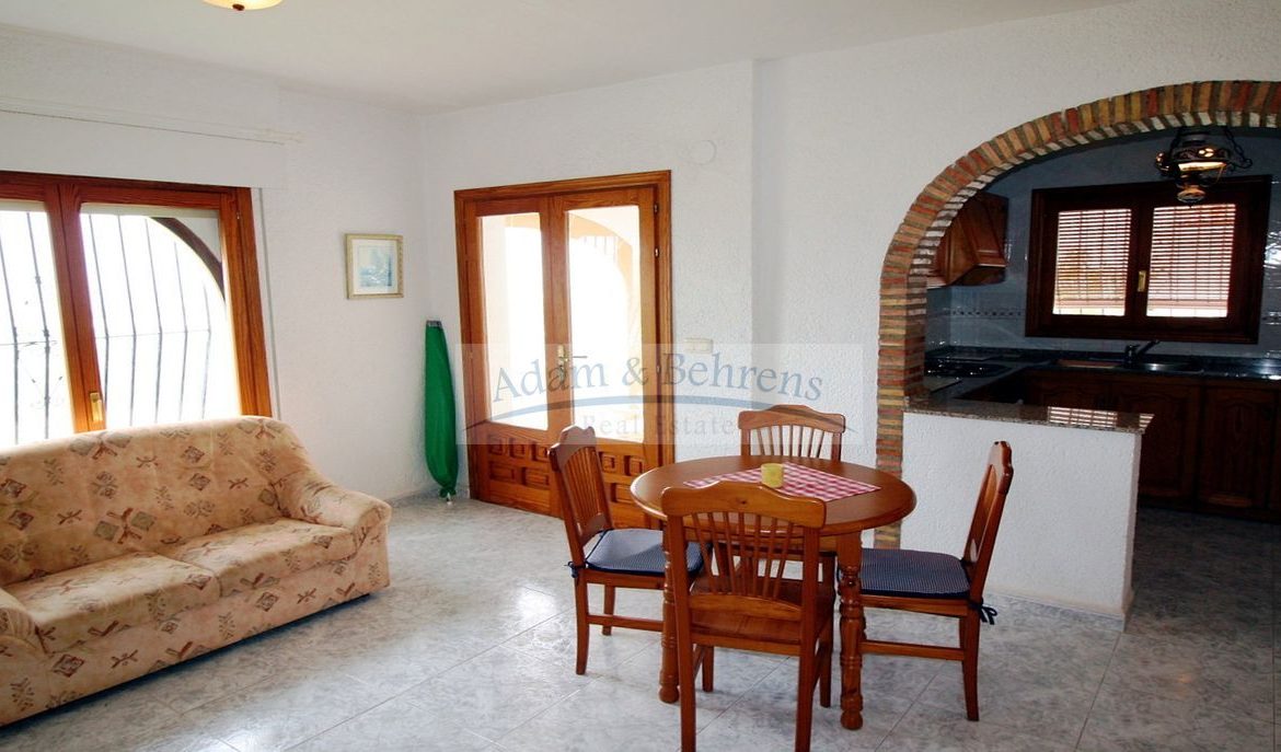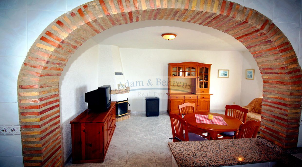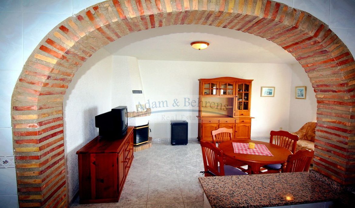 La "Villa Naike" independiente necesita un poco de trabajo cosmético y le ofrece vivir en una sola planta. Aquí encontrará un salón-comedor, una cocina americana totalmente equipada, dos dormitorios y un baño. En la terraza exterior cubierta podrá disfrutar del clima español y de las maravillosas noches cálidas de verano con una buena botella de vino.