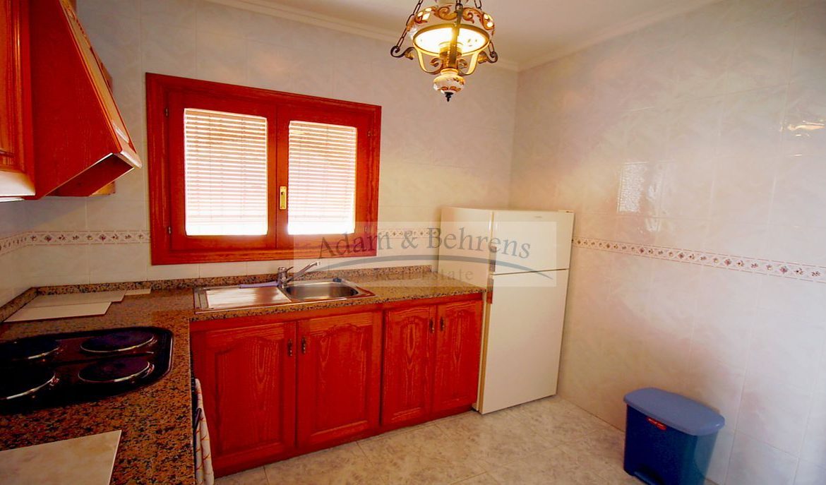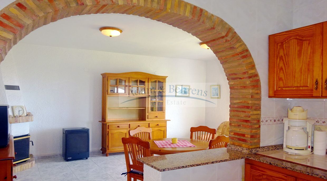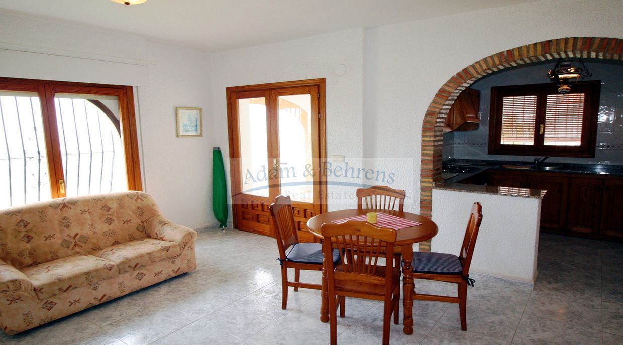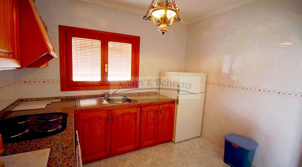 La "Villa Naike" independiente necesita un poco de trabajo cosmético y le ofrece vivir en una sola planta. Aquí encontrará un salón-comedor, una cocina americana totalmente equipada, dos dormitorios y un baño. En la terraza exterior cubierta podrá disfrutar del clima español y de las maravillosas noches cálidas de verano con una buena botella de vino.