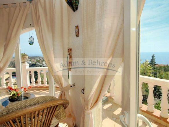 La « Villa Manolito » vous attend avec une vue imprenable sur la mer. Située dans un endroit calme et ensoleillé, elle offre sur une surface totale d'environ 157 m² un grand salon avec cheminée, une cuisine équipée, une buanderie ainsi qu'une salle à manger, une terrasse vitrée, deux chambres et deux salles de bains.