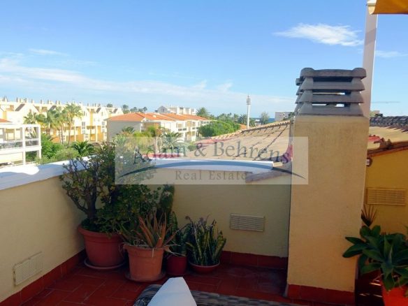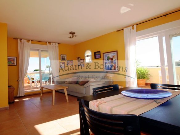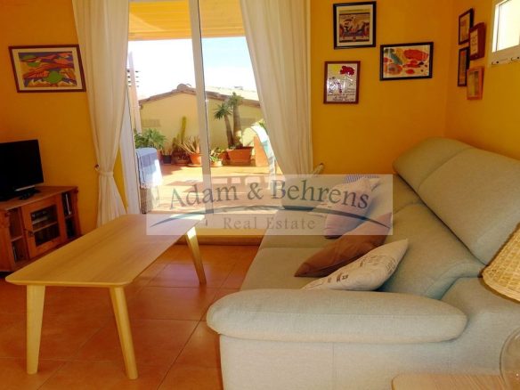 L'« Atico Cuatro Soles » est un véritable penthouse puisqu'il a été construit seul sur le toit et qu'il est en très bon état. Il convient aussi bien à une utilisation personnelle comme résidence principale ou secondaire qu'à une location de vacances. Les sols carrelés, les fenêtres en aluminium avec double vitrage, la climatisation et une place de parking directement devant la porte d'entrée soulignent le bon équipement.