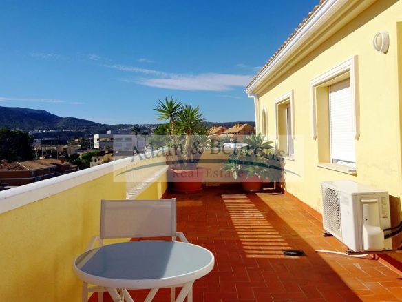 L'« Atico Cuatro Soles » est une rareté absolue parmi les offres immobilières de la région de Denia. Quatre terrasses au total vous permettent de profiter à tout moment du soleil ou de l'ombre, de la vue sur les montagnes ou sur la grande zone commune avec piscine. Vous pouvez également profiter d'une petite vue sur la mer depuis la terrasse principale.