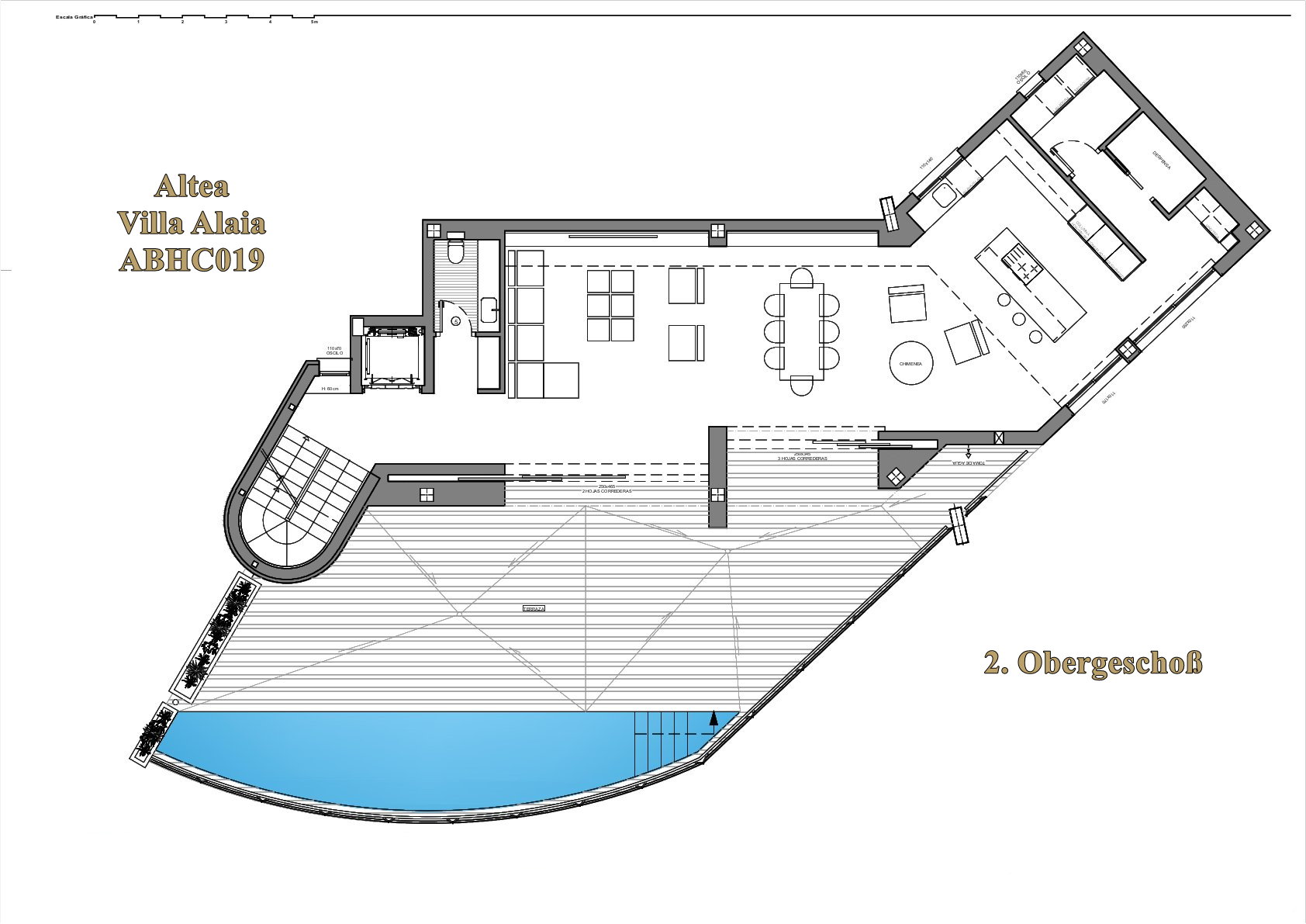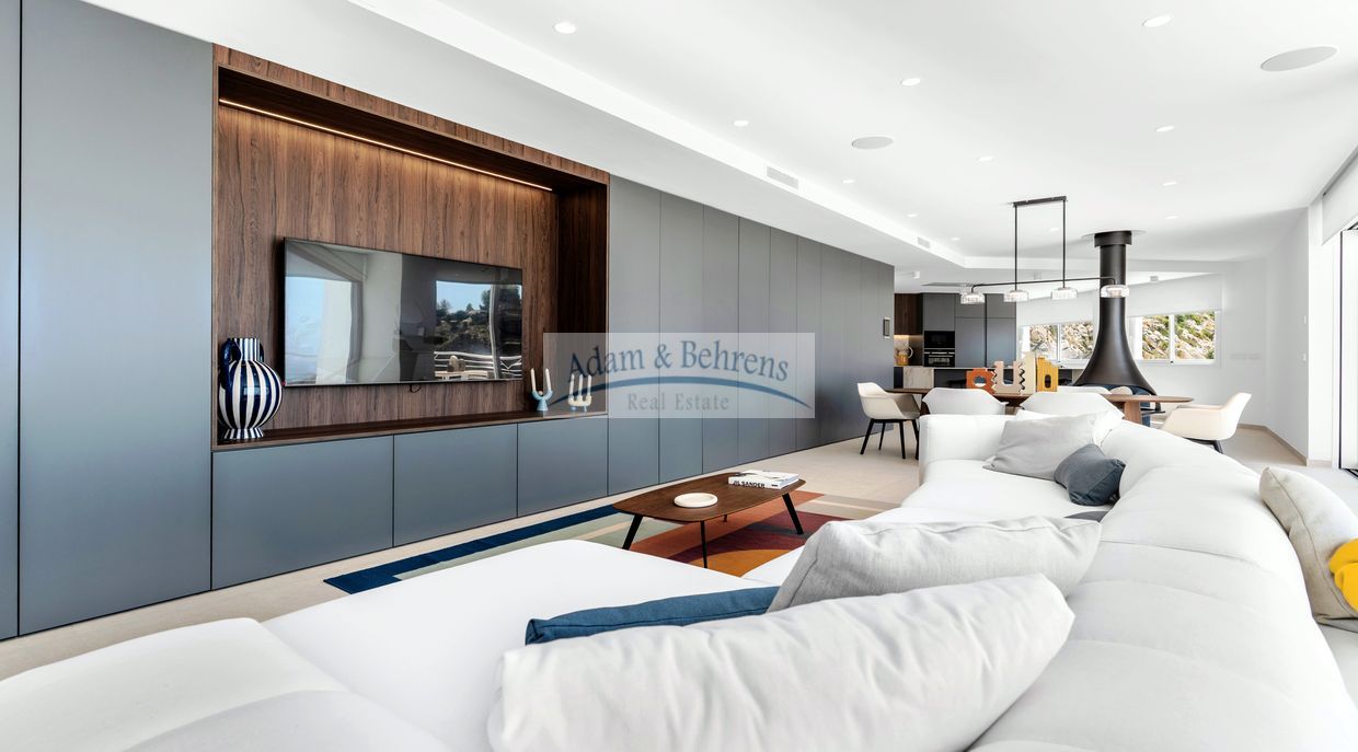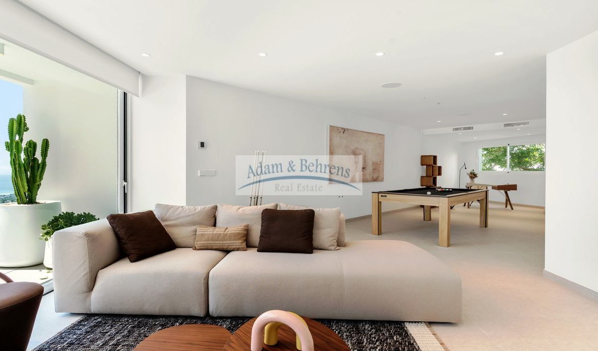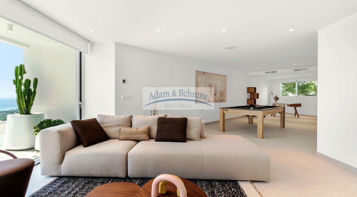 Auf einer bebauten Fläche von ca. 616 m² erwartet Sie ein spektakulärer Wohnbereich, der alleine schon ein eigenes Stockwerk einnimmt und direkt mit der weitläufigen Poolterrasse verbunden ist. Hier garantiert auch der Sommer-Essbereich mit BBQ unvergleichliche Momente unter der Sonne der Coasta Blanca oder in den lauen Sommernächten.