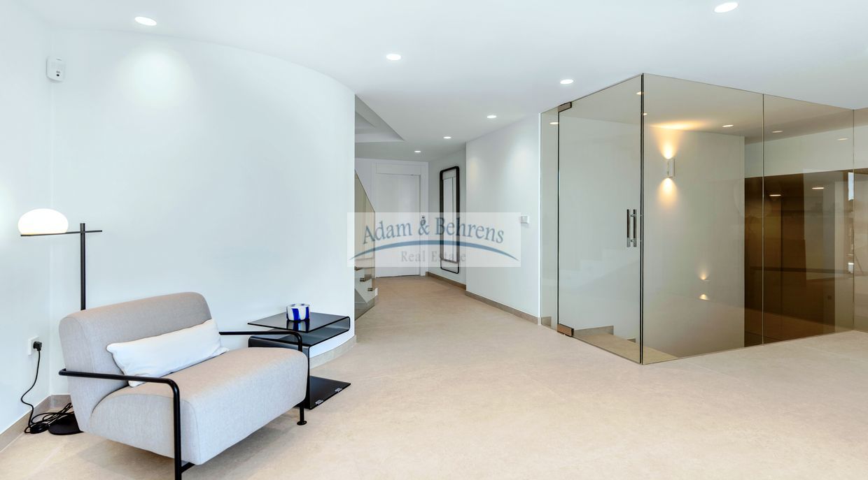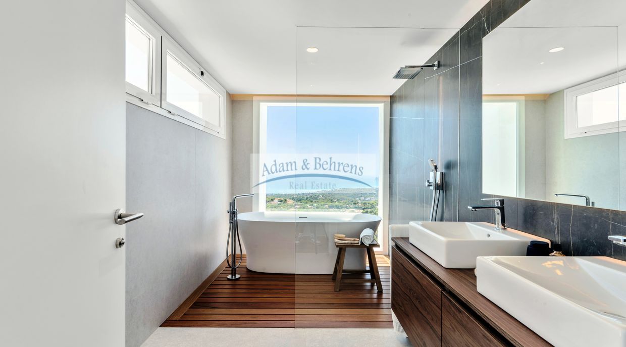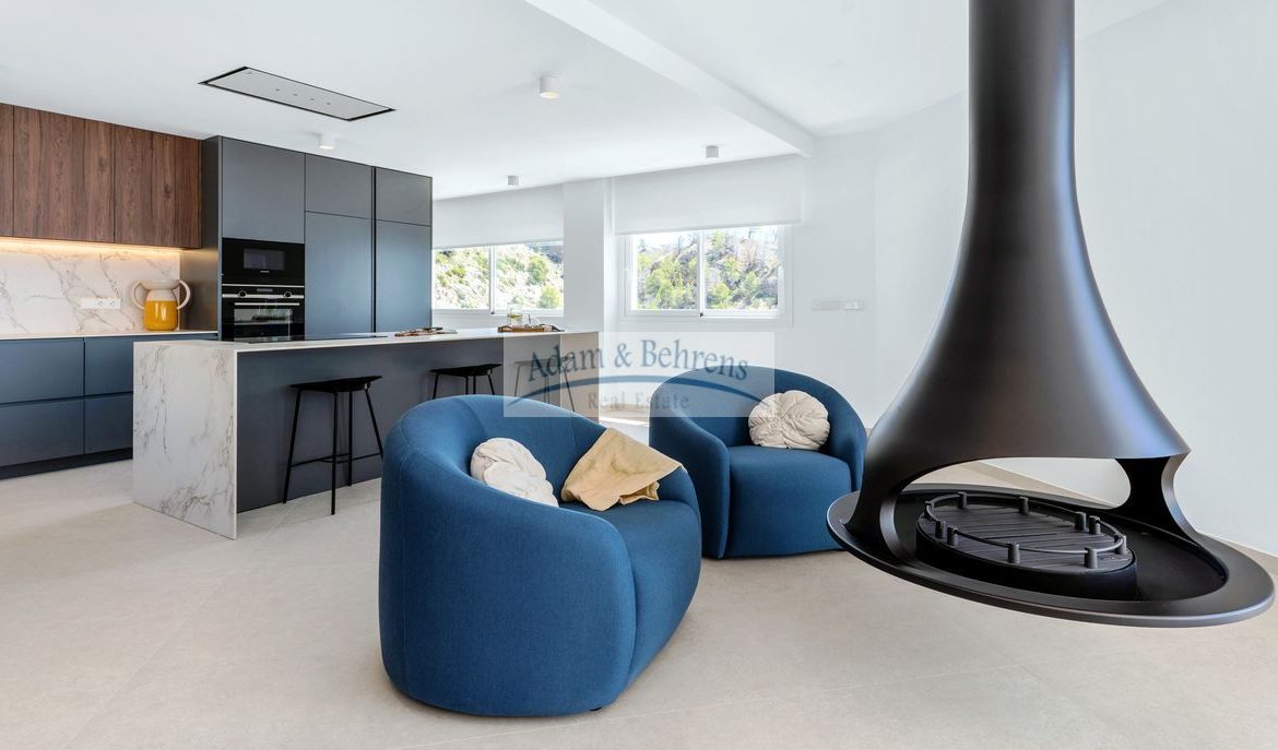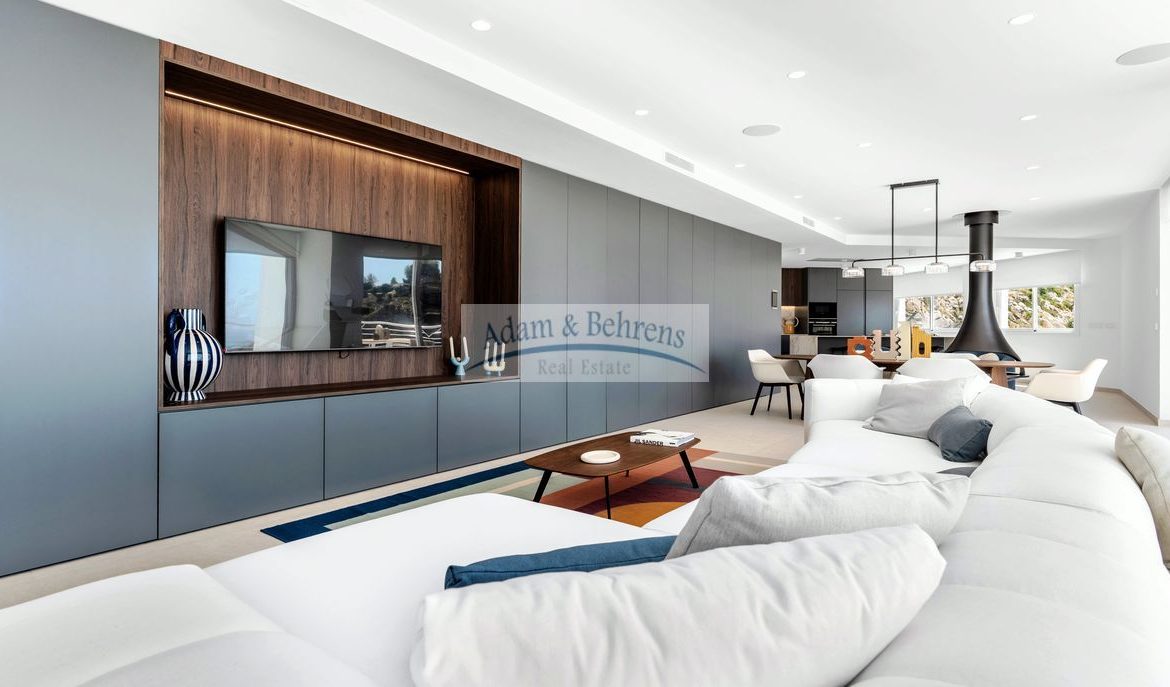 Die Innenräume und die Anordnung der Zimmer sind harmonisch aufeinander abgestimmt und spiegeln ein modernes und freundliches Erscheinungsbild wider. Dank der großzügigen Verwendung von weißen Elementen, sandfarbenen Böden und großen lichtdurchfluteten Räumen umgibt Sie künftig, in Verbindung mit dem blauen Meer, das absolute mediterrane Wohlgefühl.