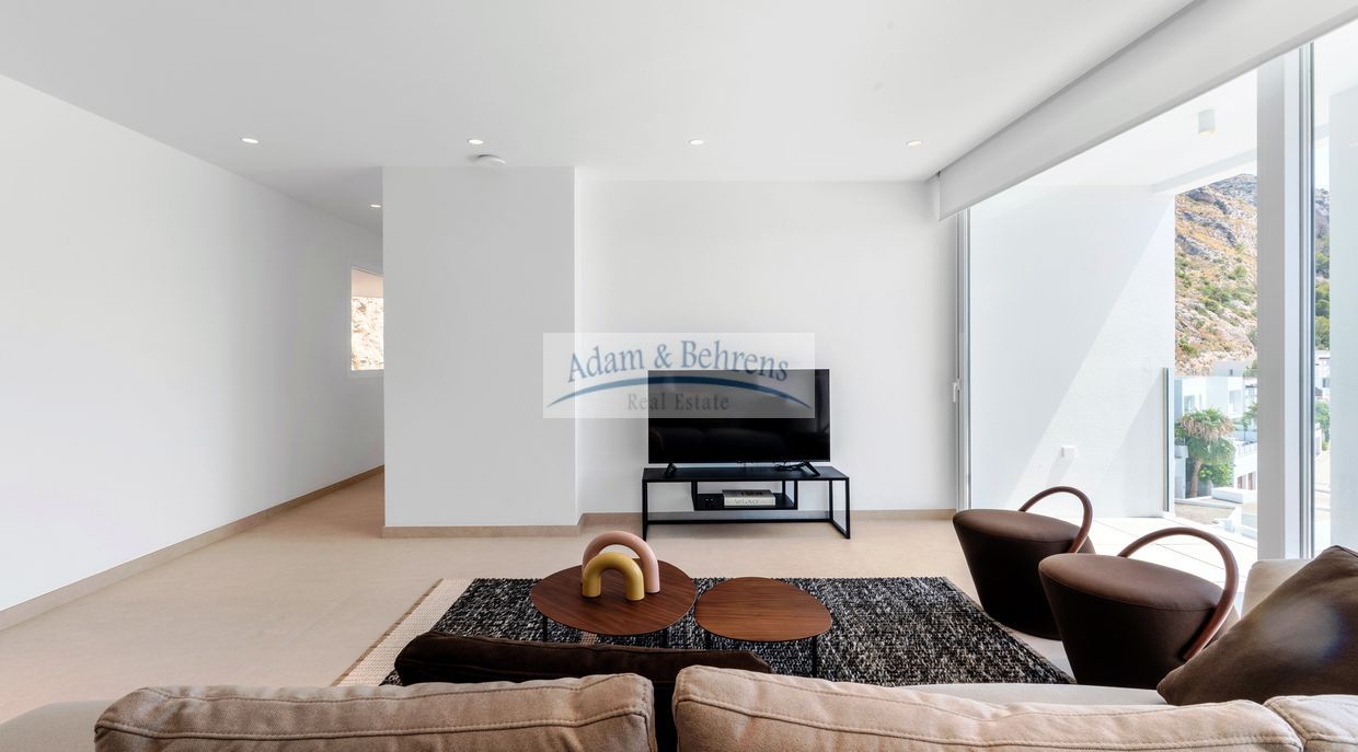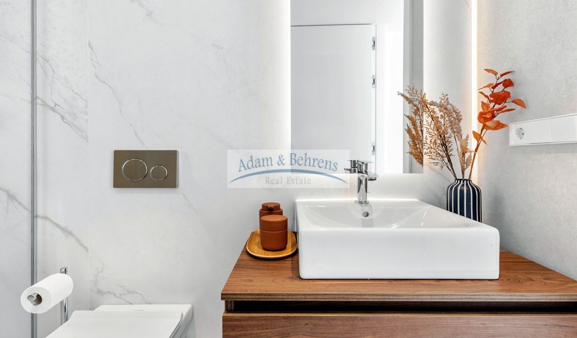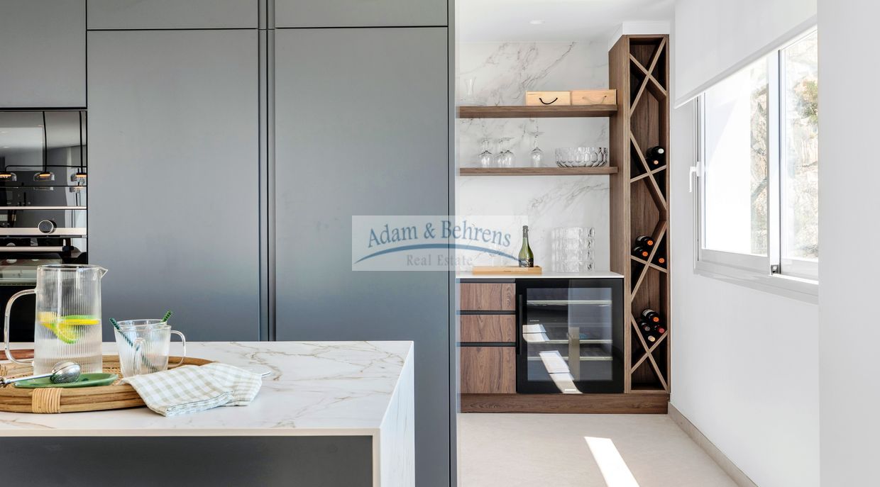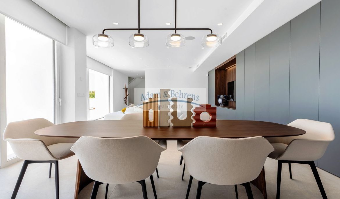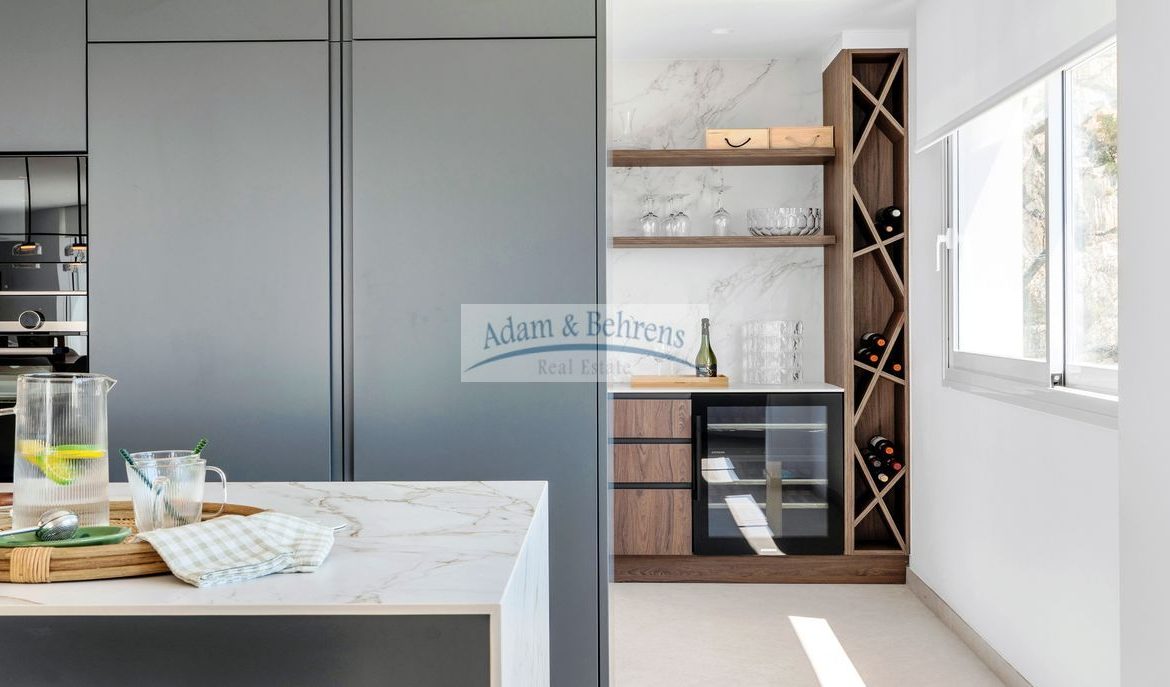 Die Innenräume und die Anordnung der Zimmer sind harmonisch aufeinander abgestimmt und spiegeln ein modernes und freundliches Erscheinungsbild wider. Dank der großzügigen Verwendung von weißen Elementen, sandfarbenen Böden und großen lichtdurchfluteten Räumen umgibt Sie künftig, in Verbindung mit dem blauen Meer, das absolute mediterrane Wohlgefühl.