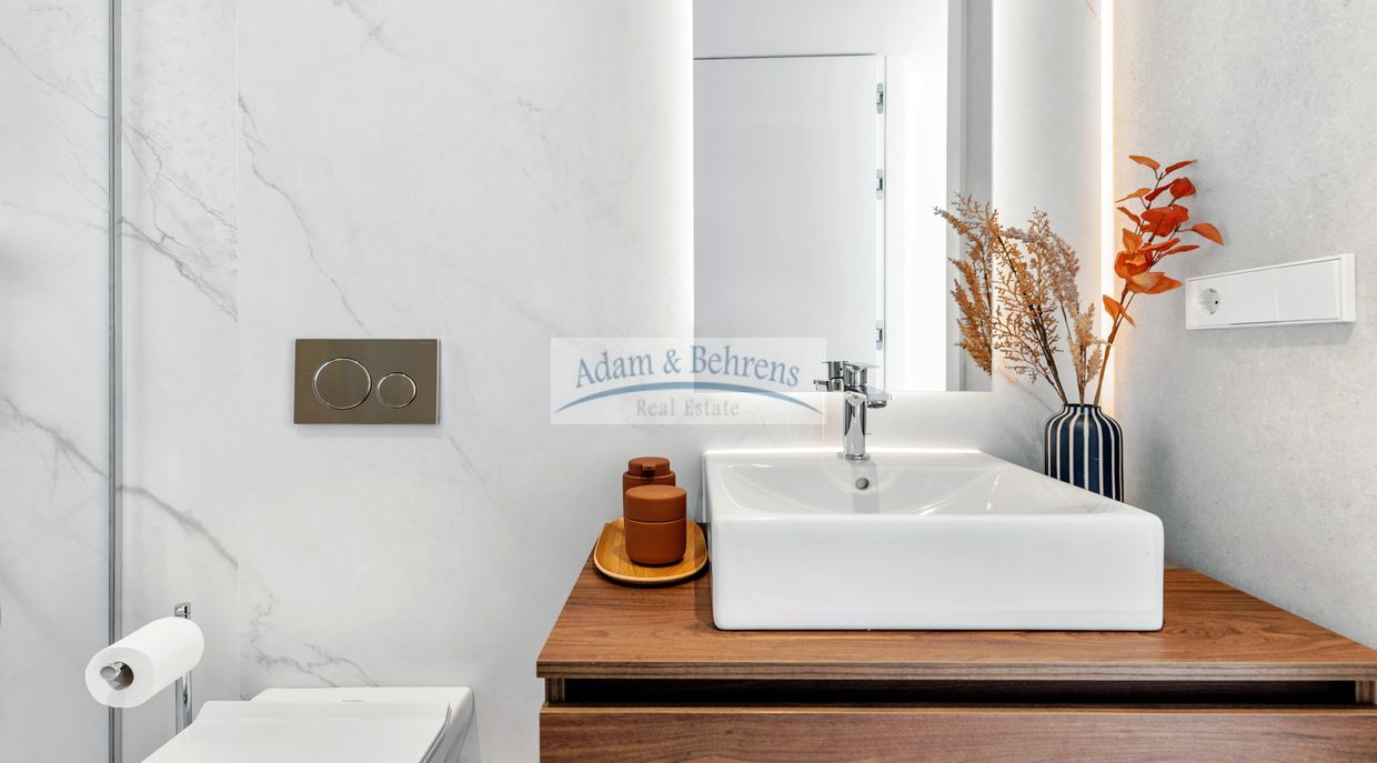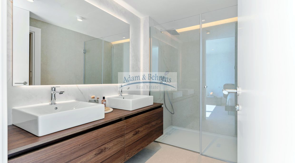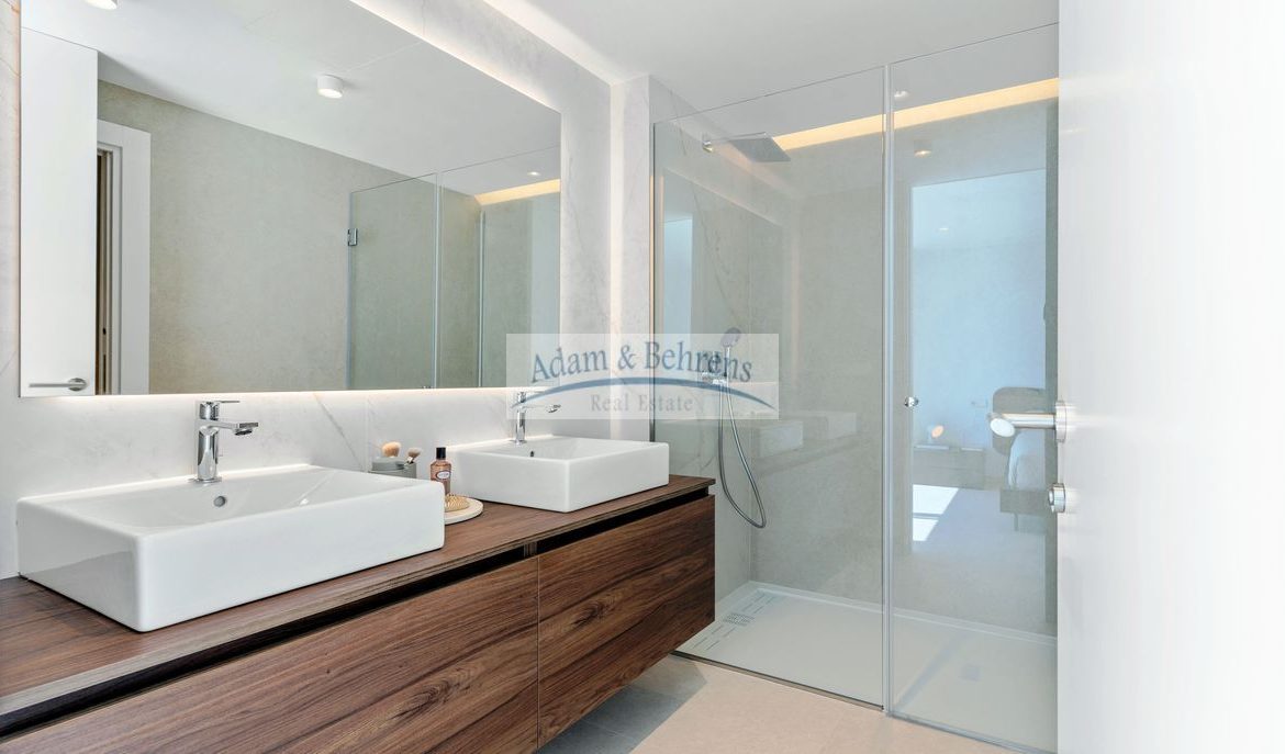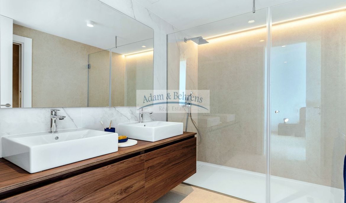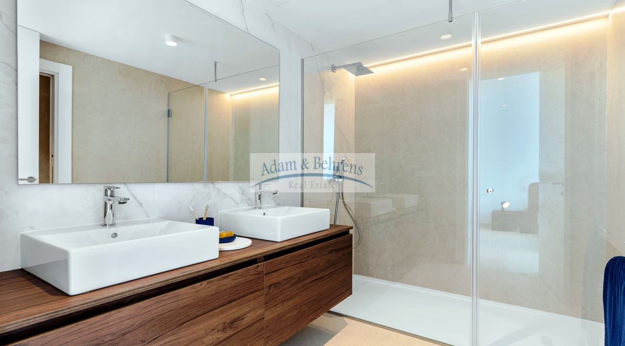 Die 4 Bäder und das Gäste-WC sind komplett ausgestattet mit Sanitäranlagen, Waschbecken, Armaturen, Spiegeln und Duschabtrennungen