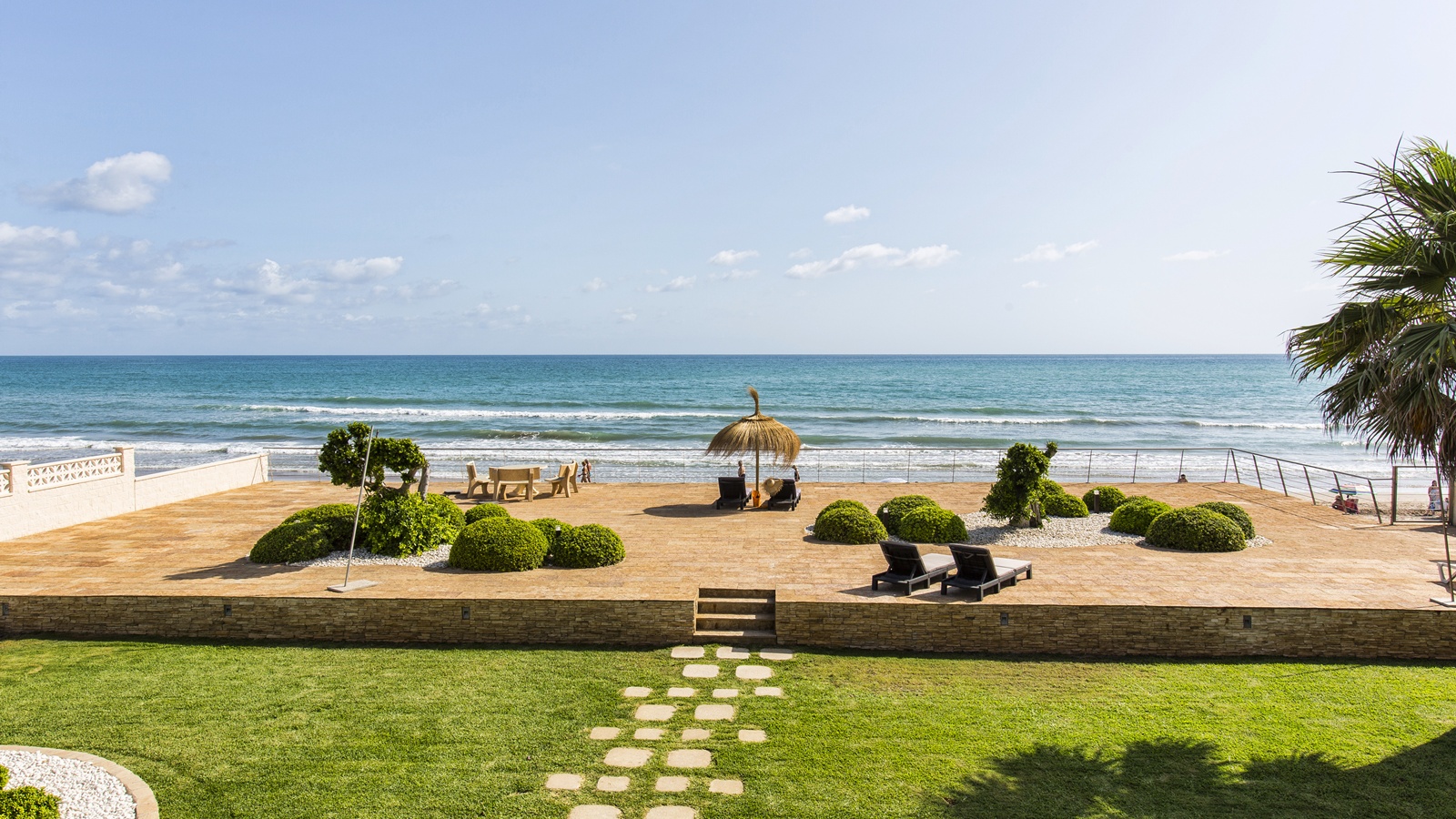 Der Außenbereich bietet direkten Zugang zum Strand und ausreichend Platz für Terrassen- und Aufenthaltsbereiche, um das mediterrane Klima in vollen Zügen zu genießen. Die Nähe zum Meer verleiht dem Haus einen besonderen Charakter und ein außergewöhnliches Wohngefühl.