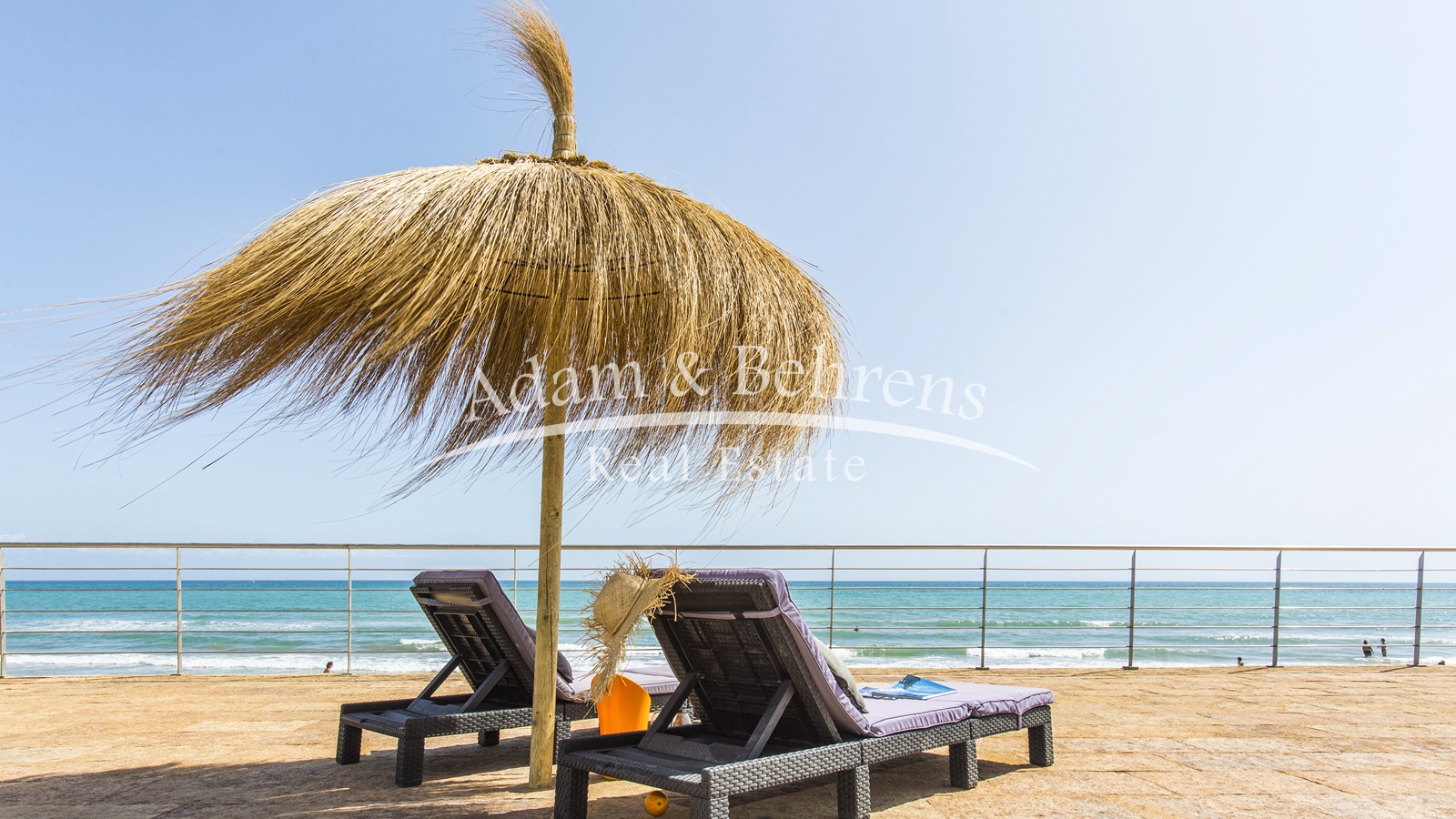 Diese außergewöhnliche Immobilie befindet sich in absoluter Bestlage direkt an der Strandpromenade, in erster Meereslinie, und bietet einen unvergleichlichen Blick auf das Mittelmeer. Ein seltenes Angebot für Käufer, die das Privileg suchen, direkt am Strand zu wohnen – mit dem Meer buchstäblich vor der Haustür.