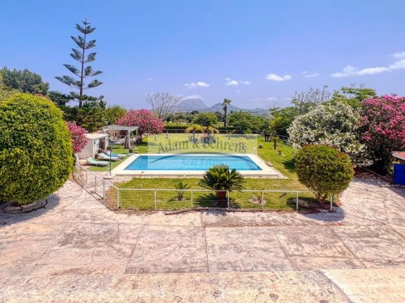 Besonders hervorzuheben sind die Außenanlagen. Umsäumt von großzügigen Grünflächen, Mandelbäumen und Fruchtbäumen jeder Art ist der ca. 12m lange Pool sicherlich das Herzstück der parkähnlich angelegten Bereiche.