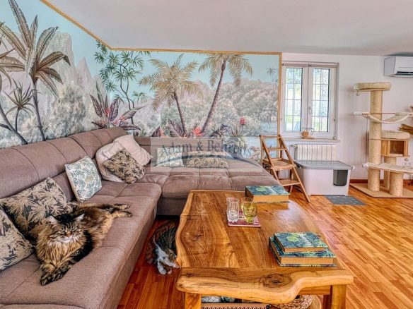 Auf einem über 17.000 m² großem Grundstück erwarten Sie ca. 390 m² Wfl.. Vier Schlafzimmer und drei Badezimmer sorgen für viel Platz für Sie, Ihre Familie und Ihre Gäste. Dabei haben Sie die Möglichkeit, Ihre Gäste in einem eigenen Bugalow unterzubringen. Eine umfassende Modernisierung sorgt für höchsten Komfort und zeitgemäßer Ausstattung wie z.B. durch bereits installierte Solarmodule mit einer Leistung von ca. 12,5 kW.