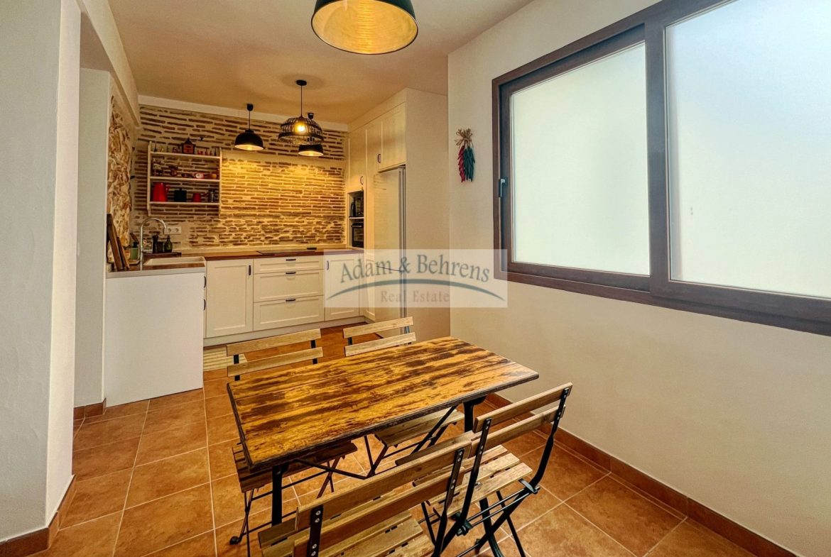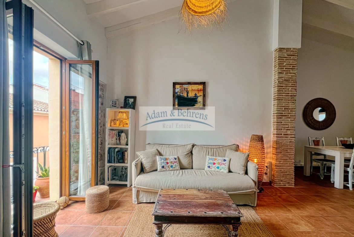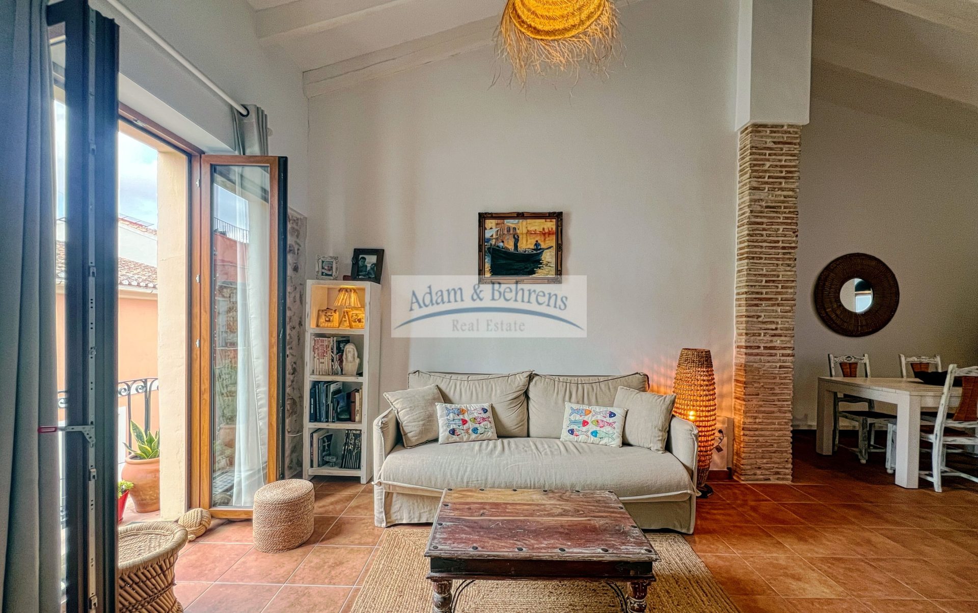Das „Piso Valeria“ wurde mit viel Liebe zum Detail und besten Materialien umfassend renoviert. Massive Eichentüren und eine freiliegende Holzbalkendecke sorgen für ein gediegenes und gemütliches Gesamterscheinungsbild. Auf einer Fläche von ca. 136 m² erwarten Sie ein nach Süden ausgerichtetes Wohnzimmer mit einer Deckenhöhe von über 4 Metern. Es vermittelt sofort beim Betreten eine lichtdurchflutete Atmosphäre und lädt zum Entspannen und Relaxen ein. Neben einem geräumigen Master bedroom steht Ihren Gästen auch noch ein eigenes Gästezimmer zur Verfügung. Zwei separate Badezimmer sorgen dafür, dass es vor dem Frühstück auf der sonnigen und großen Terrasse mit Blick über Denia, keinen morgendlichen Stau gibt.