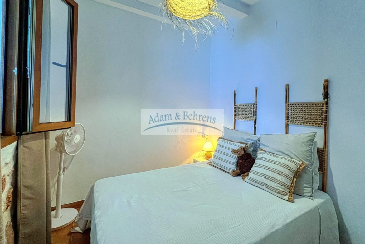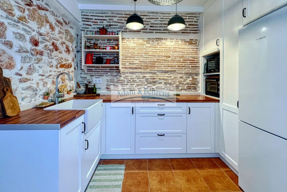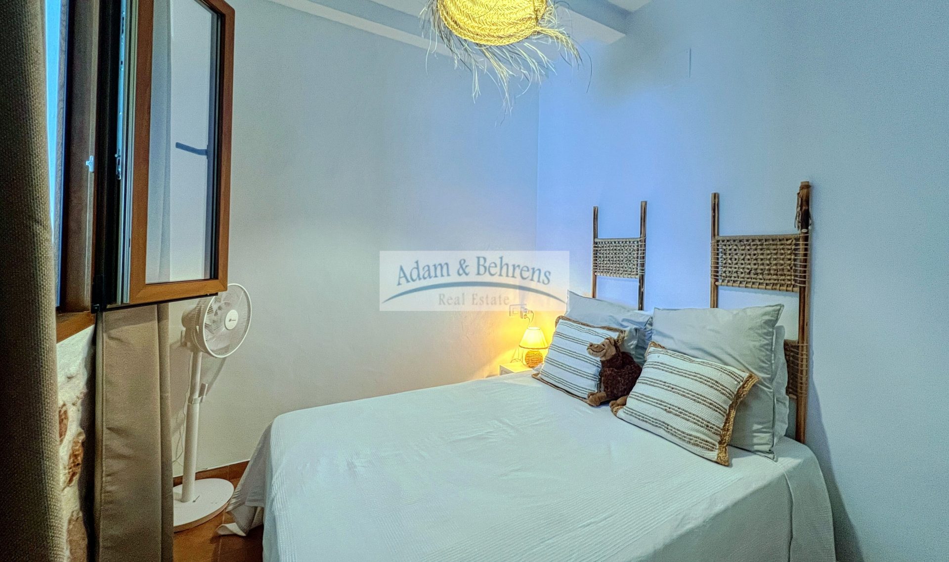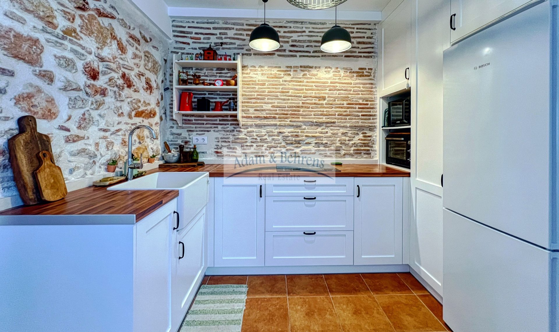 Das „Piso Valeria“ wurde mit viel Liebe zum Detail und besten Materialien umfassend renoviert. Massive Eichentüren und eine freiliegende Holzbalkendecke sorgen für ein gediegenes und gemütliches Gesamterscheinungsbild. Auf einer Fläche von ca. 136 m² erwarten Sie ein nach Süden ausgerichtetes Wohnzimmer mit einer Deckenhöhe von über 4 Metern. Es vermittelt sofort beim Betreten eine lichtdurchflutete Atmosphäre und lädt zum Entspannen und Relaxen ein. Neben einem geräumigen Master bedroom steht Ihren Gästen auch noch ein eigenes Gästezimmer zur Verfügung. Zwei separate Badezimmer sorgen dafür, dass es vor dem Frühstück auf der sonnigen und großen Terrasse mit Blick über Denia, keinen morgendlichen Stau gibt.