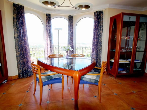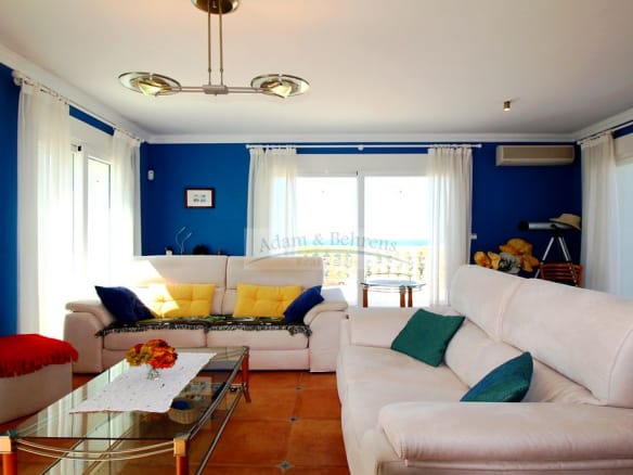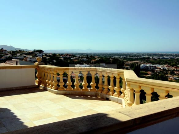 Die „Villa Centella“ bietet einen auserlesenen Blick auf den Hafen, die Stadt und das Meer. Das Anwesen wurde 2001 mit bester Bauqualität und moderner Technik erbaut. Auf der Eingangsebene finden Gäste Ihren Platz und im ersten Obergeschoß liegt der Hauptwohnbereich mit Küche, Schlafzimmer, Bäder und einem außergewöhnlichen Eßbereich mit spektakulärem Ausblick auf das Meer und die Burg von Denia. Von hier aus gelangen Sie auch direkt auf die große, sonnige Poolterrasse mit angrenzendem BBQ. Der große Pool verfügt über eine automatische Abdeckung und kann dank der Heizung mittels einer Wärmepumpe auch in der kühleren Jahreszeit gut genutzt werden.