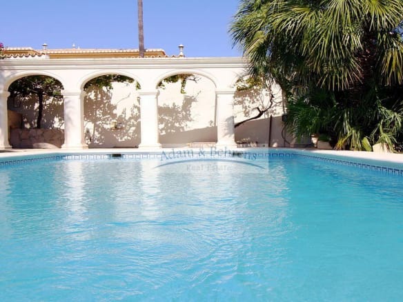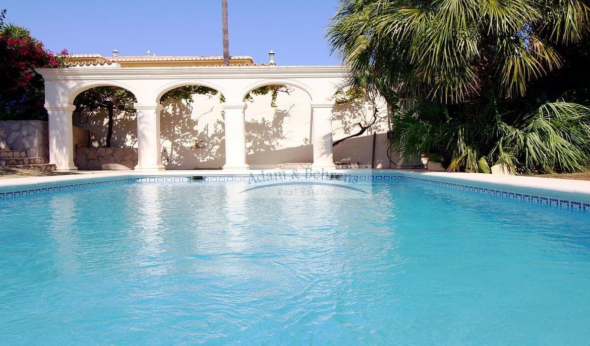 Mittig zwischen den beiden Gebäuden befindet sich der große Pool, der mit seinen Ausmaßen von 5m x 10m zum Schwimmen einlädt und mit einer automatischen Abdeckung ausgestattet ist.