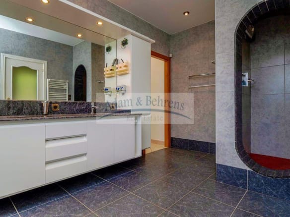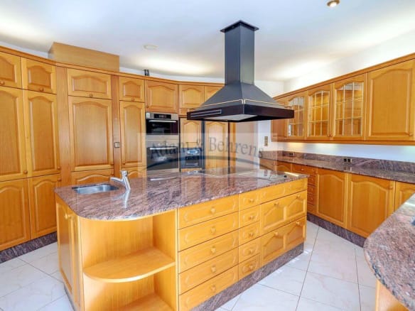 Auf einer Wfl. von insgesamt ca. 255 m² erwarten Sie auf der gleichen Ebene noch drei Schlafzimmer und drei Badezimmer sowie ein Gäste-WC und ein Hauswirtschaftsraum. Die Küche ist komplett eingerichtet. Sie bietet eine Kochinsel und viel Raum um Speisen auch für mehrere Gäste gleichzeitig zubereiten zu können, die in einem eigenem, angrenzenden und lichtdurchfluteten Wintergarten Platz finden.