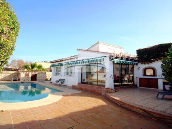 Diese freistehende Villa befindet sich auf einem ca. 800 m² großen und flachem Grundstück in einer privilegierten Lage. Von hier aus können Sie die wunderschönen, nur ca. 500 m entfernten Sandstrände erkunden, spannende Wassersportarten ausüben oder einen Spaziergang am Hafen machen und dabei die lokale Gastronomie in den charmanten Restaurants in der Nähe besuchen. Denn – das Zentrum von Denia mit der romantischen Altstadt, ist nur ca. 3 km entfernt und daher auch schnell zu erreichen.