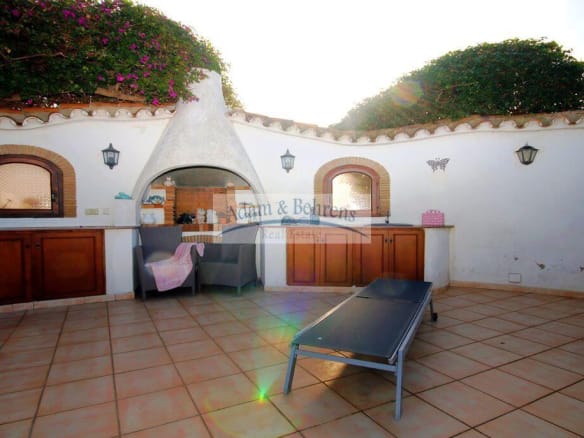 Die Terrassen dieser Villa sind ein wahres Juwel, da Sie hier jederzeit das mediterrane Klima und das ganze Jahr über – auch im Winter – die spanische Sonne genießen können. Ob Sie in der Sonne entspannen, eine Mahlzeit im Freien in Ihrer eigenen Sommerküche organisieren, oder einfach die Sonnenuntergänge bei einem guten Glas spanischen Weines genießen möchten, hier können Sie die schönsten Zeiten verbringen. Dazu lädt auch der große Pool ein, der sich mit seiner Größe von 6m x 12m von den Standard Pools deutlich abhebt und viel Platz zum Schwimmen bietet.