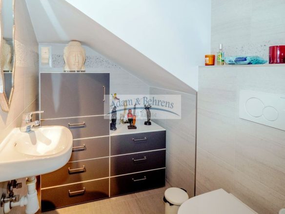 Die obere Ebene ist dem Schlafbereich vorbehalten und präsentiert sich mit drei freundlichen Schlafzimmern sowie zwei Badezimmern.