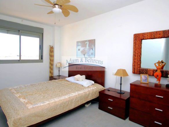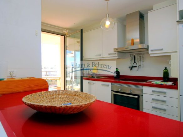 Auf ca. 100 qm verteilen sich drei Schlafzimmer, zwei Bäder – davon eines en Suite und ein kombiniertes Wohn-/Esszimmer. Eine offene, moderne Einbauküche grenzt direkt an den Essbereich. Highlight ist die schöne Terrasse mit traumhaftem Blick zu den Bergen und auf das Meer. Das „Piso Viviana“ eignet sich aufgrund der Größe sowohl für eine kleine Familie als auch für diejenigen, die zusätzlichen Platz für Gäste, Heimbüro oder einfach nur eine geräumige Wohnung wünschen.