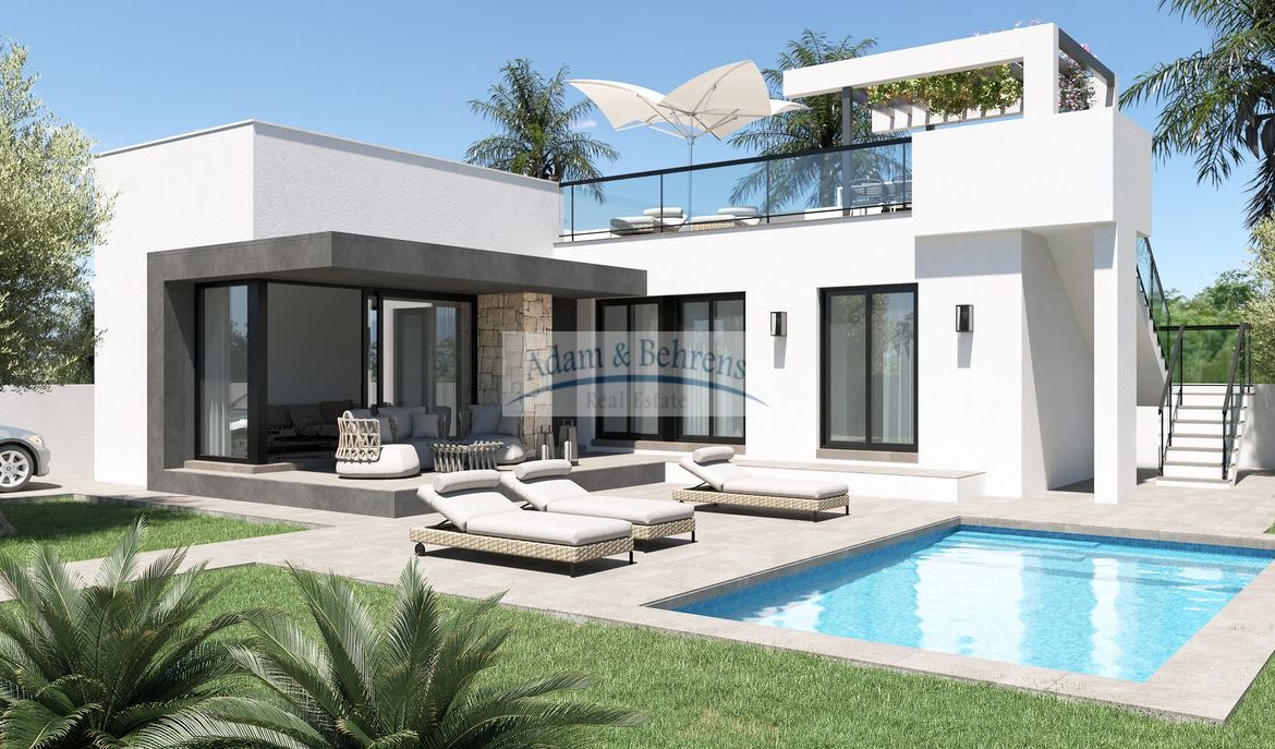Ihre Villa ist hochwertig ausgestattet und wird von einem erfahrenen und seriösen Bauträger errichtet. Sie wohnen künftig in einer modernen Villa mit eigenem Garten, eigenem Parkplatz und auf Wunsch mit privatem Swimmingpool. Drei Schlafzimmer und zwei Bäder sorgen innen für viel Platz und auf dem Dach befindet sich ein Solarium, dass uneingeschränkten Sonnengenuß verspricht.