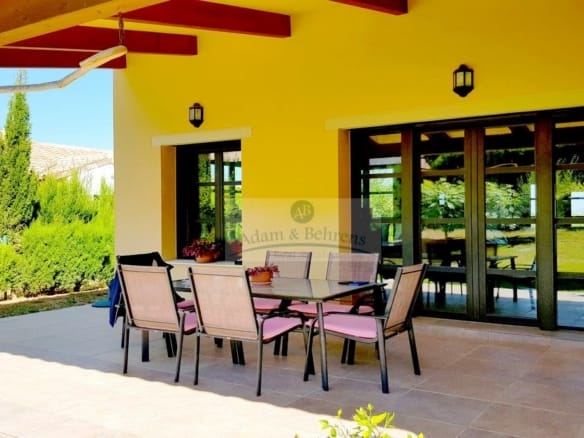 Das Grundstück mit ca. 1.000 m² ist flach und idealerweise befinden sich alle Wohn- und Nutzräume der ca. 192 m² WNfl. auf einer Ebene. Helle und freundliche Räume lassen die spanische Sonne herein und das kombinierte Wohn-Esszimmer bietet mit hohen Decken ein großzügiges und luftiges Wohngefühl. In den etwas kühleren Jahreszeiten sorgt der Kamin für Gemütlichkeit und lädt zum Verweilen bei einem Glas Rotwein ein.