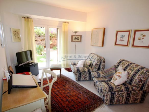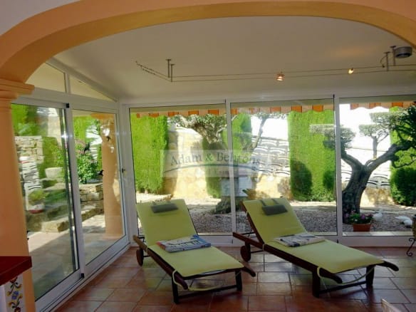 Der gesamte Lebensbereich der „Villa Esmeralda“ befindet sich idealerweise auf einer Ebene. Hier bieten Ihnen ein großer und heller Wohnbereich mit herrlichem Blick über das Meer, eine komplett eingerichtete Küche mit anschließendem Eßbereich, Diele, drei Schlafzimmer und zwei Bäder allen erdenklichen Komfort. Das Herzstück des gesamten Wohnbereiches ist der große Wintergarten der neben einem BBQ auch Platz für einen Liegebereich, einen weiteren gemütlichen Sitzbereich und einem großen Essbereich für Sie und Ihre Gäste mit phantastischem Blick über das Tal und das Meer bietet. An den Wintergarten schließt sich eine große Terrasse an, die bei Bedarf überdacht werden kann und in einen Grünbereich mit Liegefläche mündet. In dem privaten Infinity-Pool können Sie dem Horizont entgegenschwimmen und traumhafte Ausblicke genießen – hier wirkt die Natur zum Greifen nah und lädt zum Entspannen und Relaxen ein.
