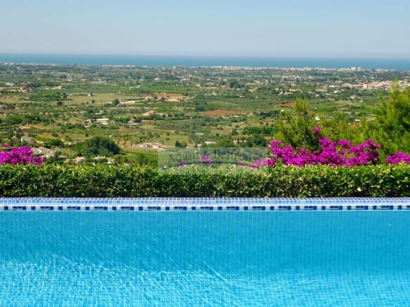Ein Highlight der „Villa Esmeralda“ ist sicherlich der unverbaubare Fernblick über die Ebene, den Golfplatz und das Meer. Tagsüber leuchtet Ihnen das strahlende Blau des Mittelmeeres entgegen und Nachts funkeln die Lichter der Küste in einem Lichtermeer.