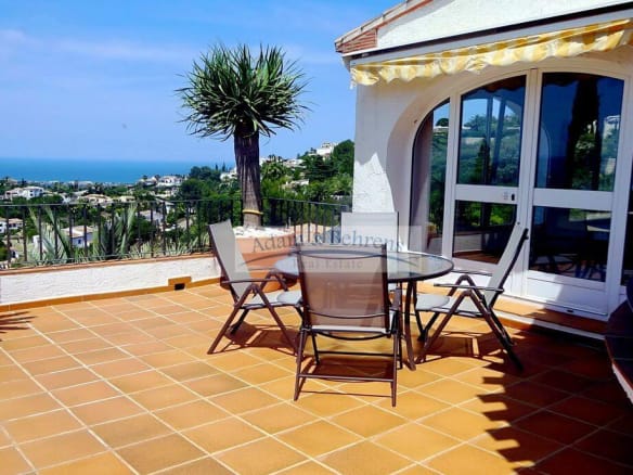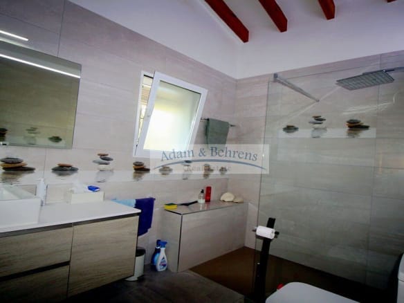 Beim Betreten der „Villa Fernanda“ gelangen Sie über den Eingangsbereich des Hauses zu einem geräumigen Wohn- und Esszimmer. Direkt anschließend sorgen die großen Fenster des Wintergartens mit Blick auf das Meer bei jedem Besucher für einen Moment des erstaunten Innehaltens. Vom Wohn-/ Esszimmer aus haben Sie Zugang zu einer voll ausgestatteten Küche und einer großzügigen Poolterrasse mit Außendusche und Außentoillette. Selbstverständlich bietet der in Spanien so wichtige Außenbereich auch einen unverbaubaren Blick über die Ebene und das Meer. Im weiteren Verlauf gibt es noch drei Schlafzimmer sowie zwei Bäder, davon im Hauptschlafzimmer ein Bad en Suite.
