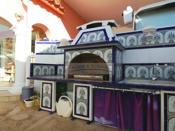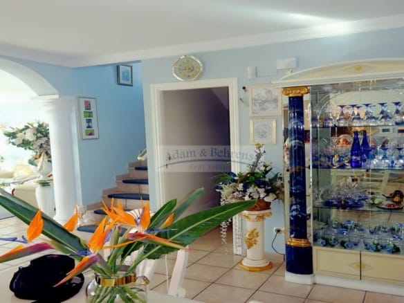 Zentrale Klimaanlage mit Wärmepumpe individuell regulierbar, zwei separate Klimageräte, zwei Carports davon einer extra für Wohnmobile gestaltet, zwei Wintergärten, überdachter Salzwasserpool – extra abdeckbar und beheizbar mit Wärmepumpe, Bergblick, unmittelbar am Golfplatz, amerikanische Küche hochwertig ausgestattet z.b. mit Mielegeräten, Hauswirtschaftsraum, Außendusche, Außenküche, Abstellraum, Kunststofffenster mit Isolier- und Sicherheitsglas, elektrische Rollläden, elektrische Marquisen, Moskitonetze, Alarmanlage mit Aufschaltung auf den Wachdienst, SAT-Anlage, Internet
