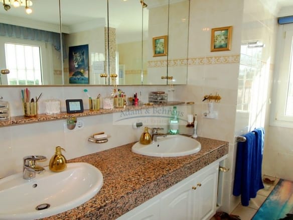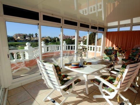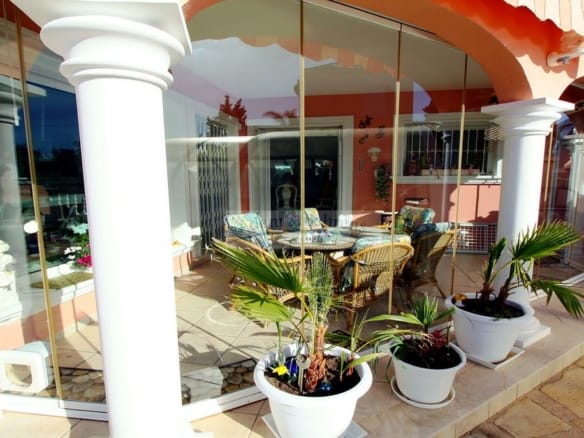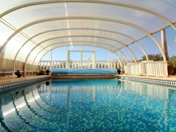 Die „Villa en el Campo de Golf“ wurde sehr hochwertig ausgestattet und bietet auf ca. 200 qm jedweden Luxus. Dazu gehören zwei Wintergärten genauso wie ein überdachter und über eine Wärmepumpe beheizbarer Salzwasser-Pool. Eine zentrale und individuell regulierbare Klimaanlage sorgt immer für Wohlbefinden in allen Räumen und für Ihre Autos befinden sich zwei Carports auf dem Grundstück, wobei einer extra für ein Wohnmobil gestaltet wurde.