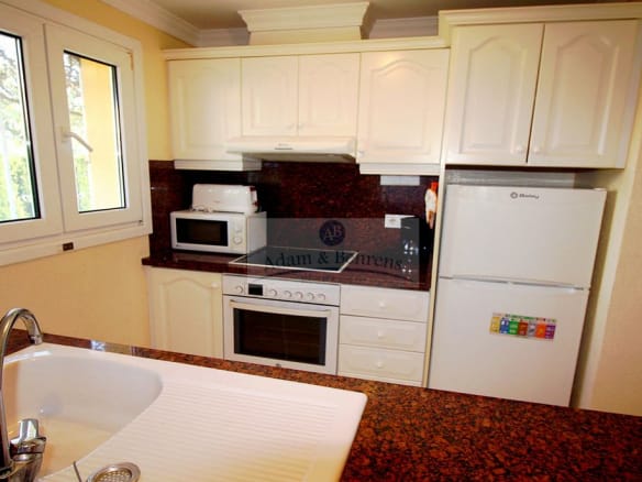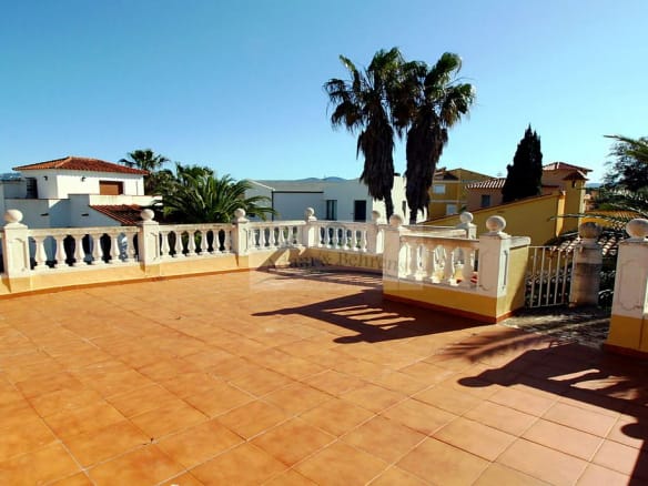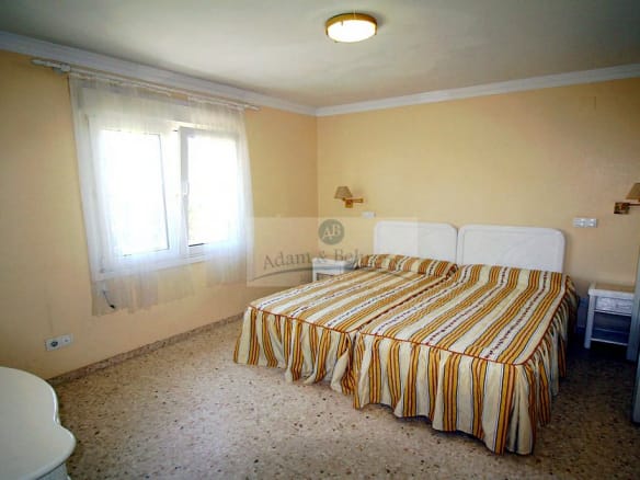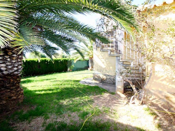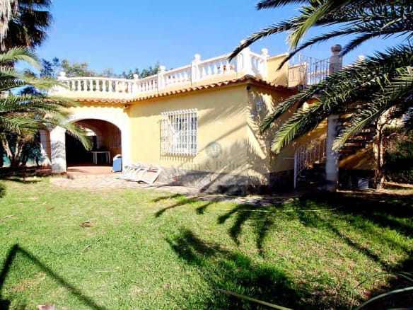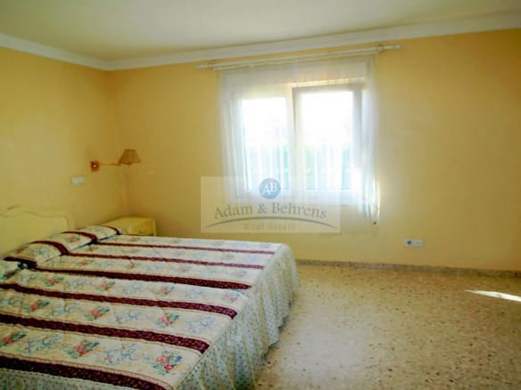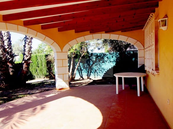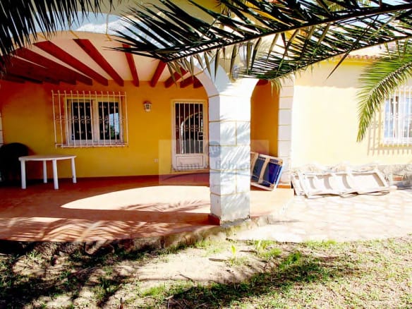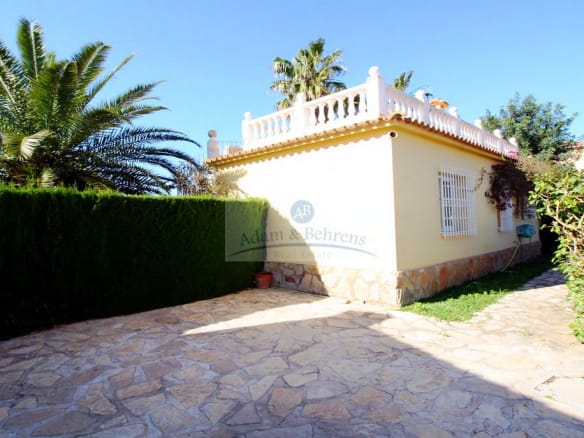 Die 1995 erbaute Villa bietet auf einer Ebene einen großzügigen Wohn-/Essbereich mit direkt angeschlossener und eingerichteter amerikanischer Küche. Außerdem zwei geräumige Schlafzimmer und ein Bad. Auf der großen, direkt an den Wohnbereich anschließenden, überdachten Terrasse läßt es sich hervorragend entspannen und das mediterrane Klima in vollen Zügen genießen.