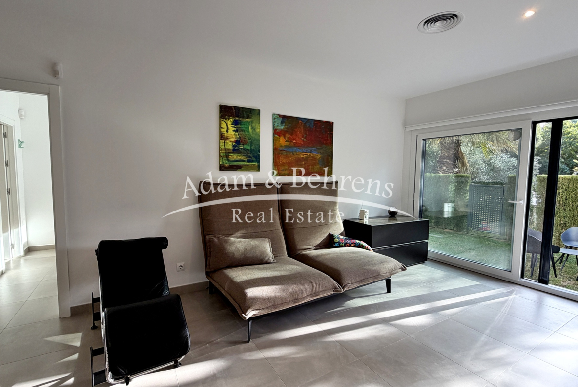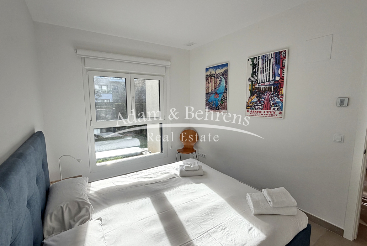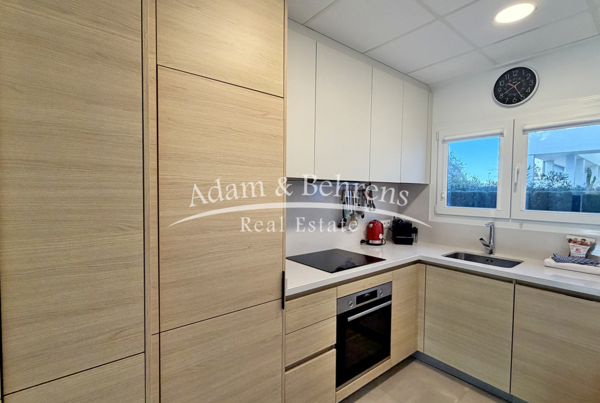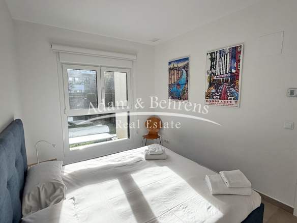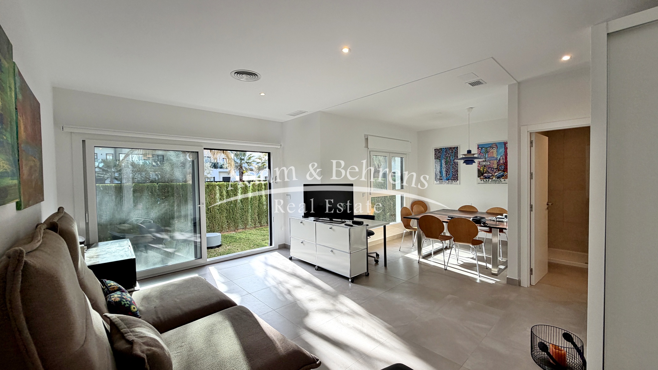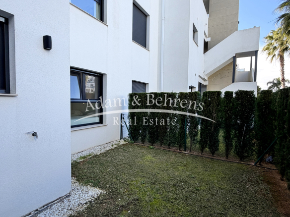 Diese neuwertige Erdgeschosswohnung überzeugt durch ihre moderne Architektur, helle Räume und eine funktionale Grundrissgestaltung. Der offene Wohn- und Essbereich mit integrierter Küche bildet das Herzstück der Wohnung und bietet direkten Zugang zur Terrasse und zum privaten Gartenbereich und den daran anschließenden Gemeinschaftspool.