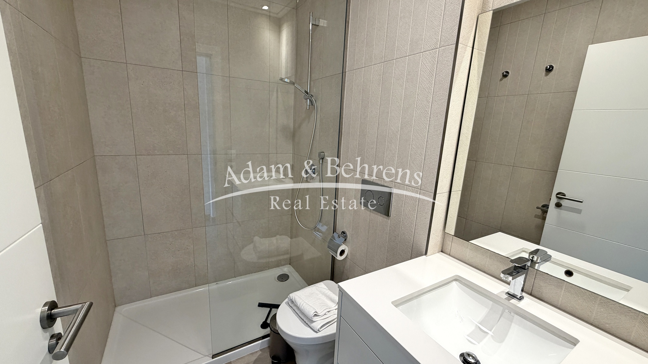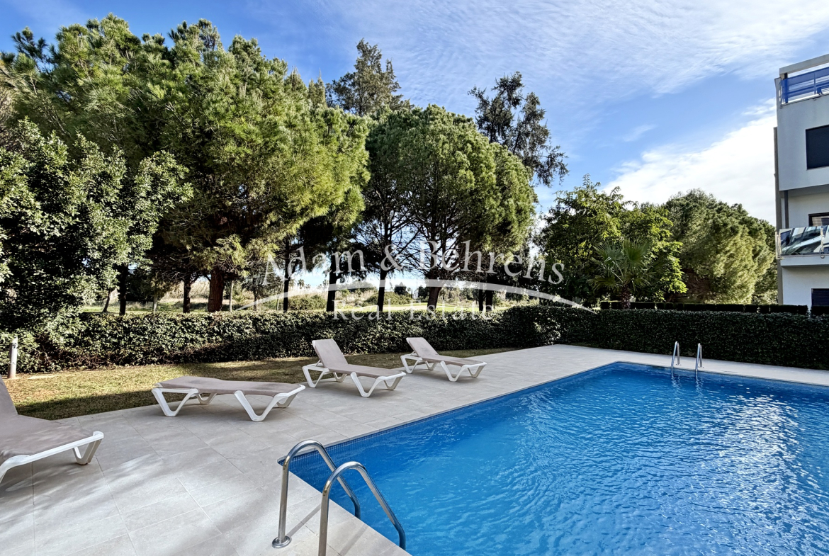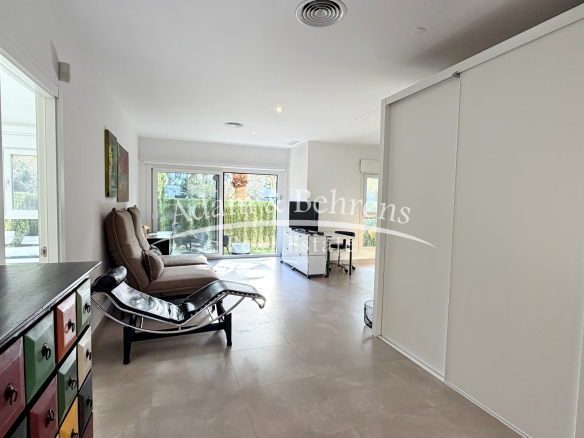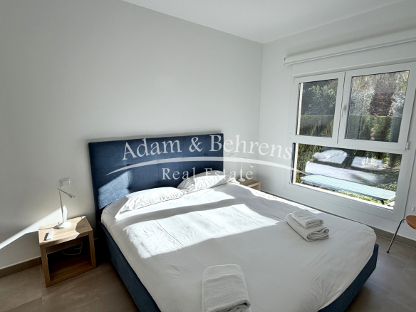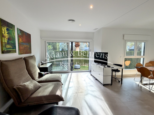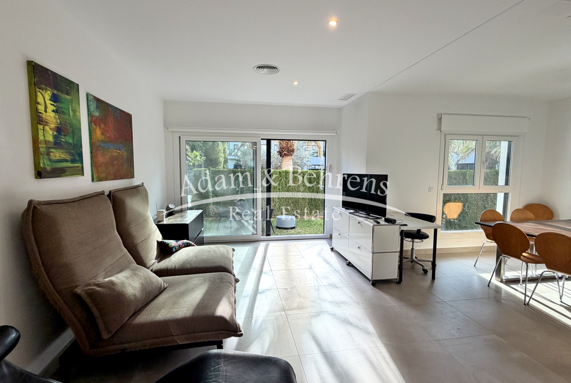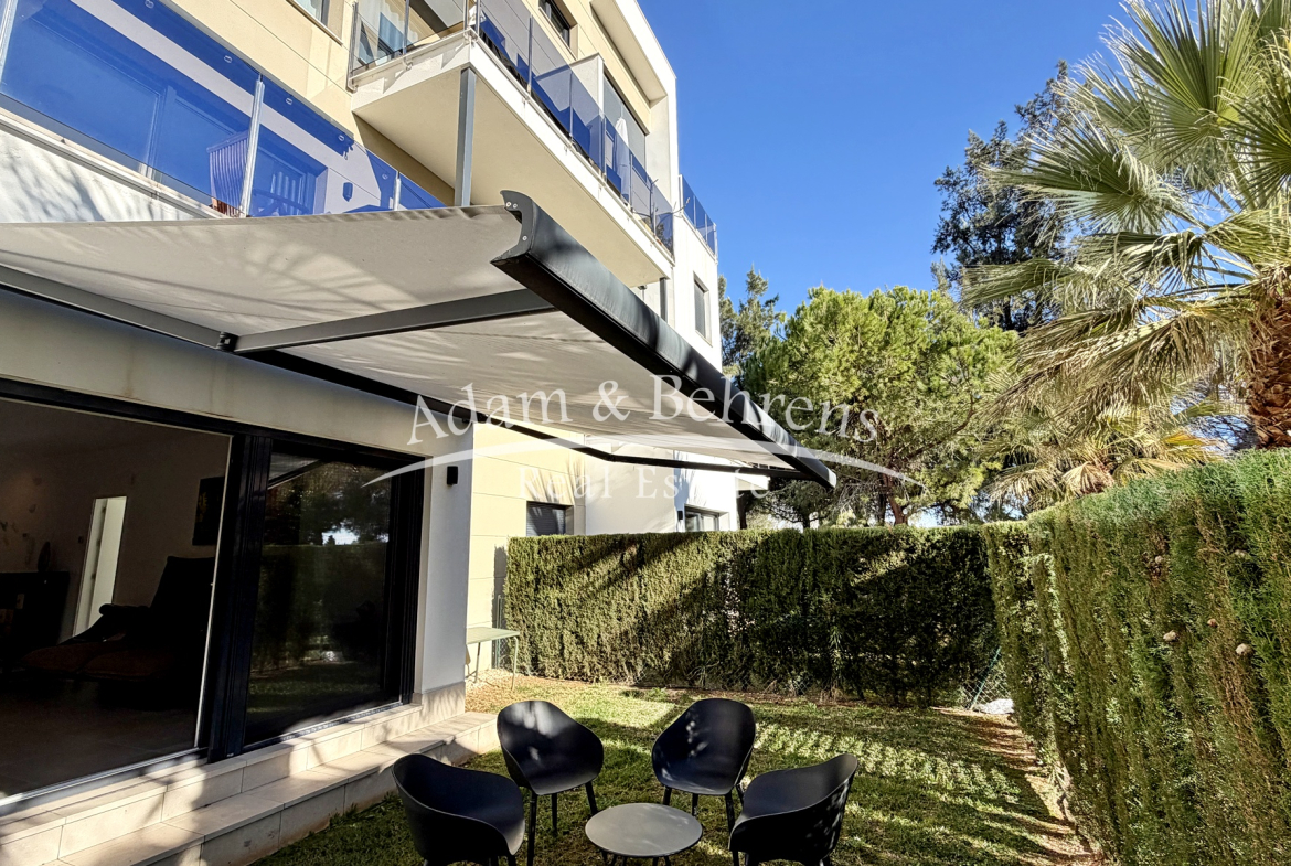 Diese neuwertige Erdgeschosswohnung überzeugt durch ihre moderne Architektur, helle Räume und eine funktionale Grundrissgestaltung. Der offene Wohn- und Essbereich mit integrierter Küche bildet das Herzstück der Wohnung und bietet direkten Zugang zur Terrasse und zum privaten Gartenbereich und den daran anschließenden Gemeinschaftspool.
