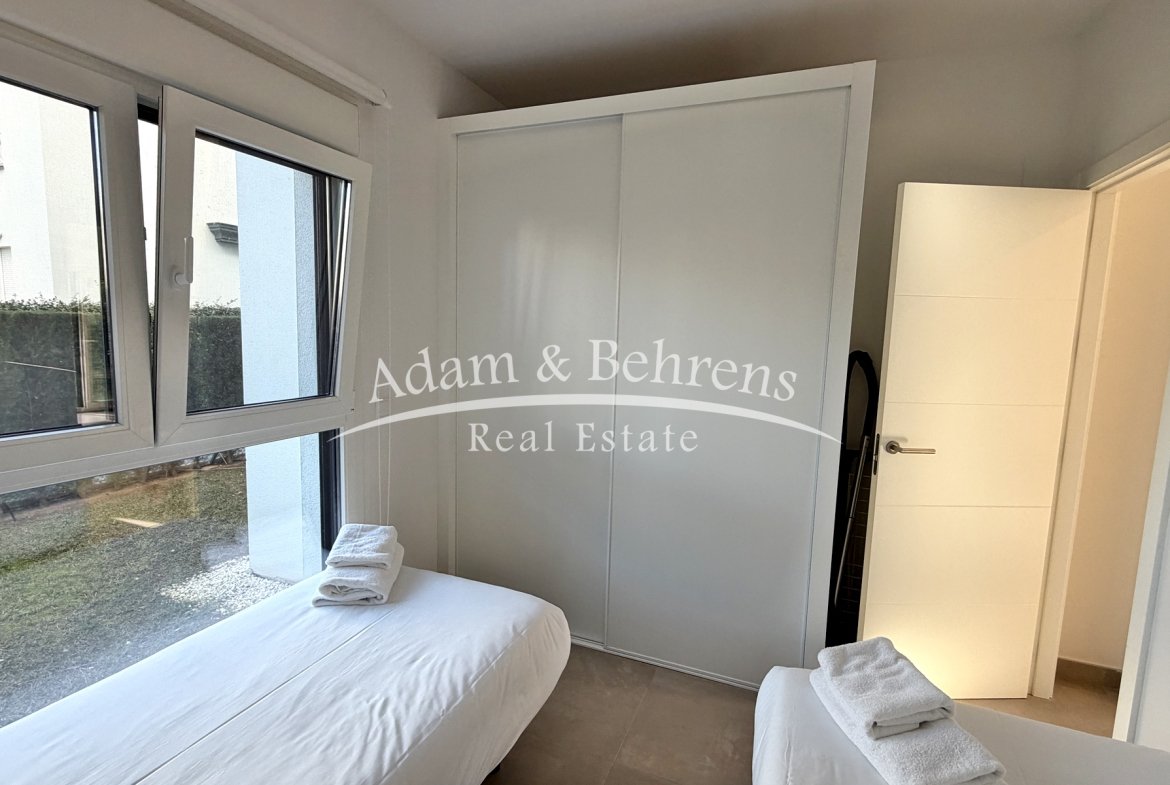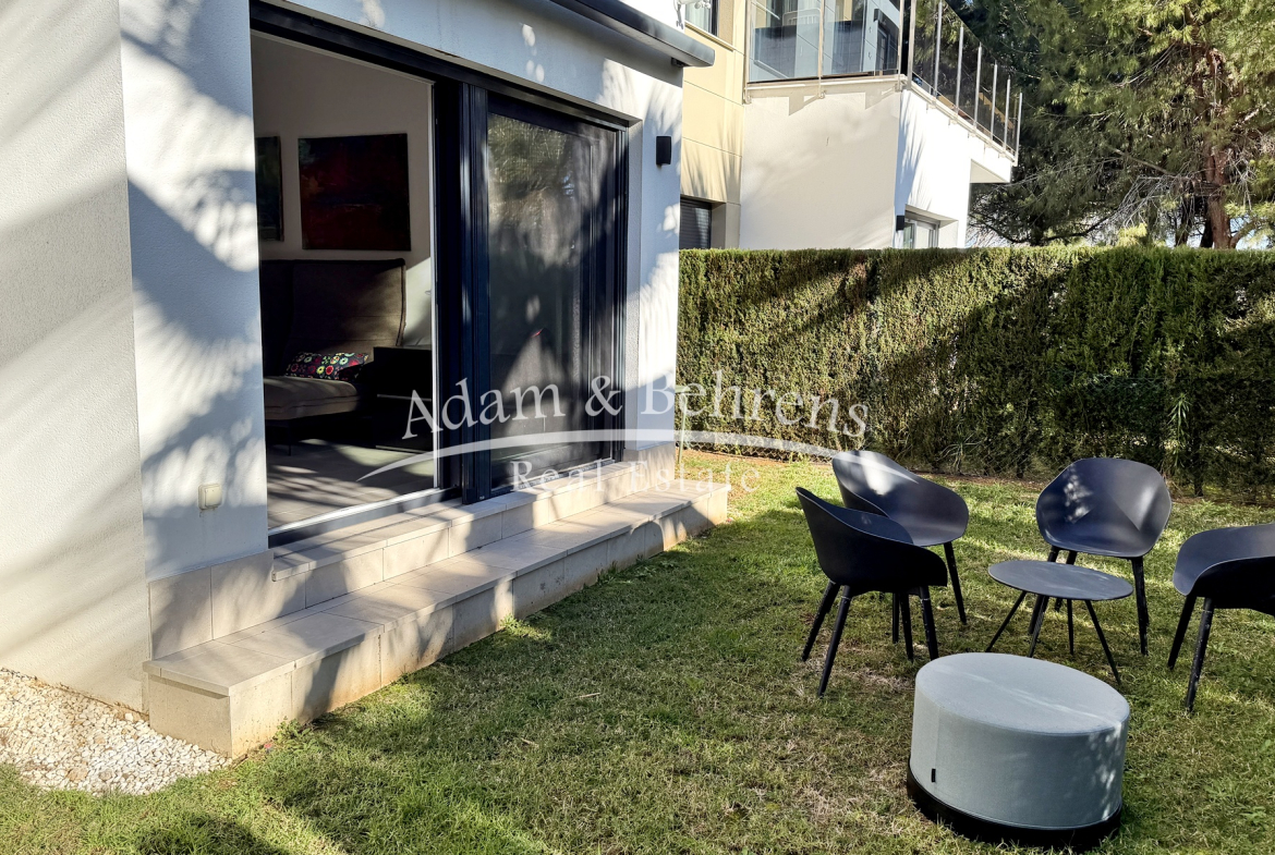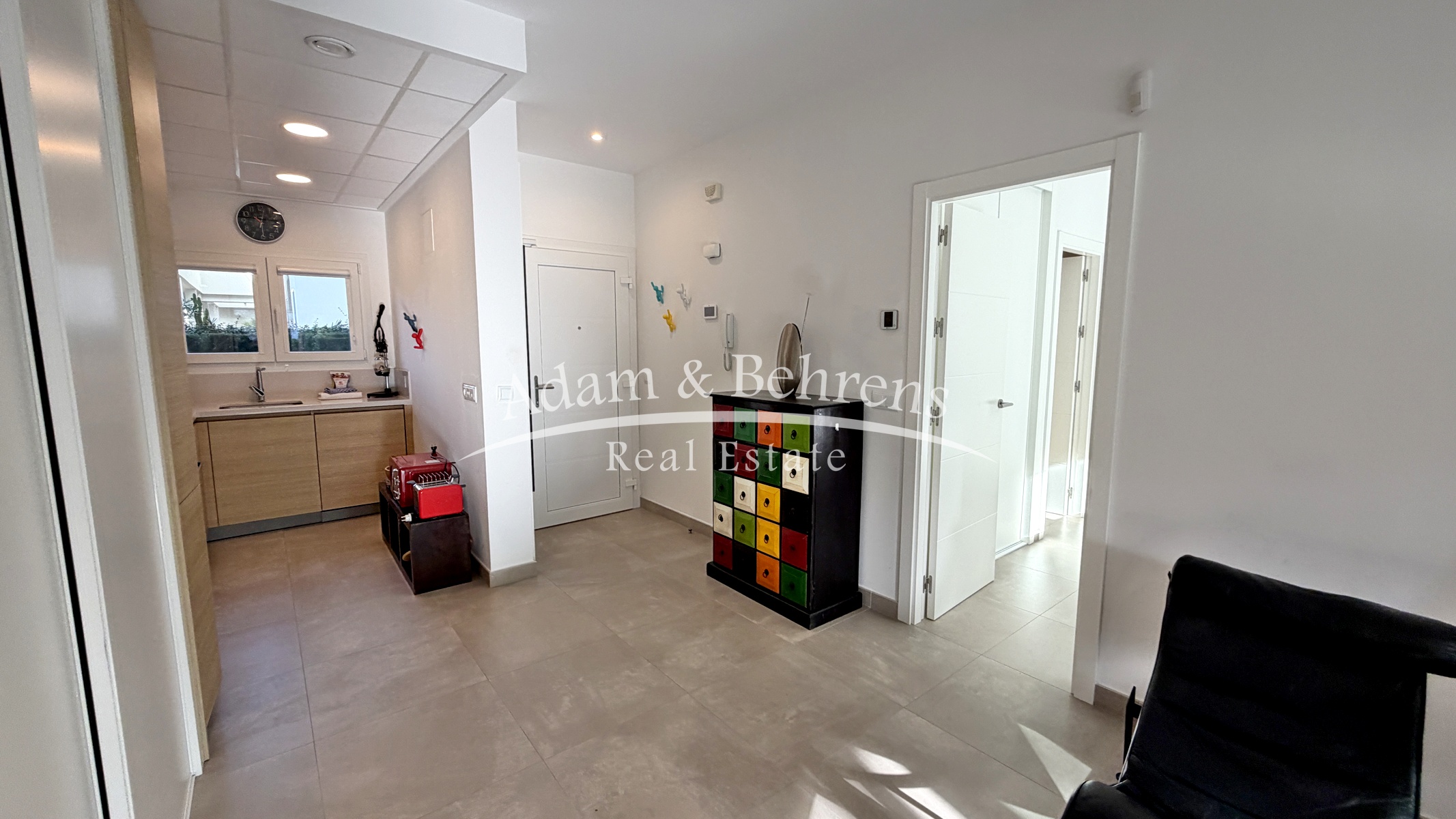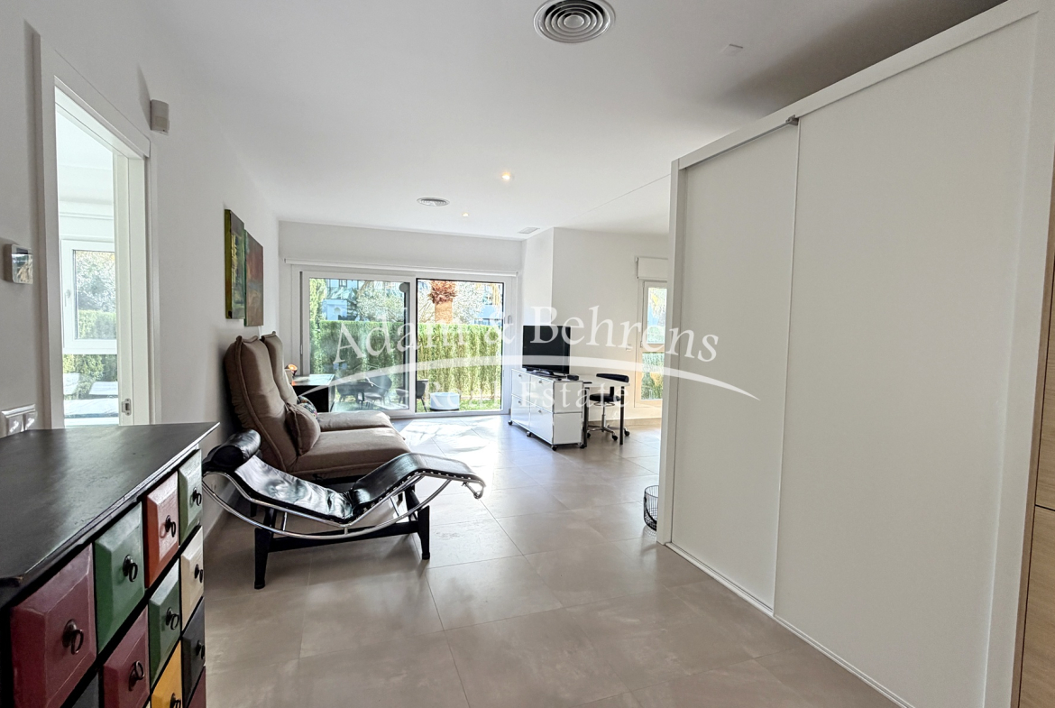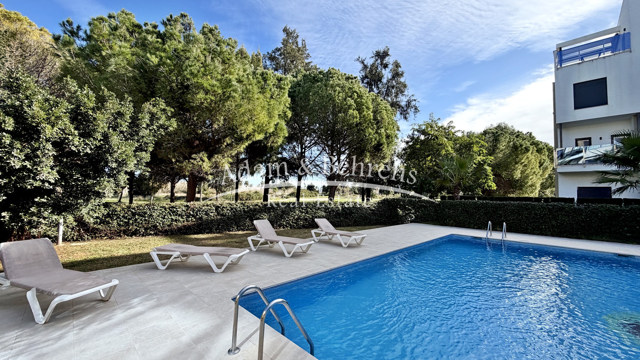Diese neuwertige Erdgeschosswohnung überzeugt durch ihre moderne Architektur, helle Räume und eine funktionale Grundrissgestaltung. Der offene Wohn- und Essbereich mit integrierter Küche bildet das Herzstück der Wohnung und bietet direkten Zugang zur Terrasse und zum privaten Gartenbereich und den daran anschließenden Gemeinschaftspool.