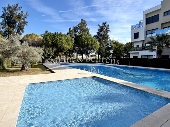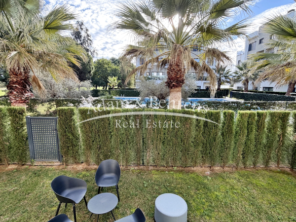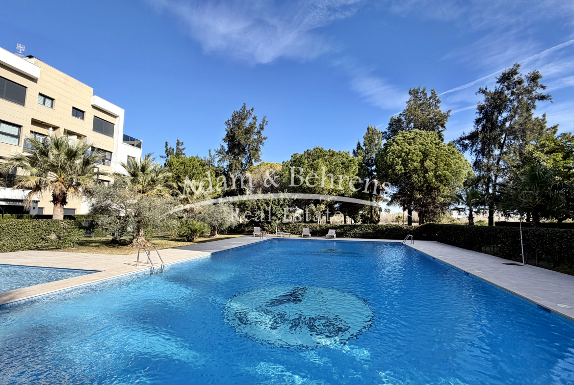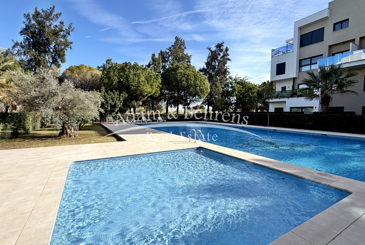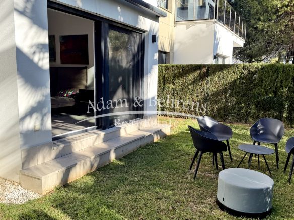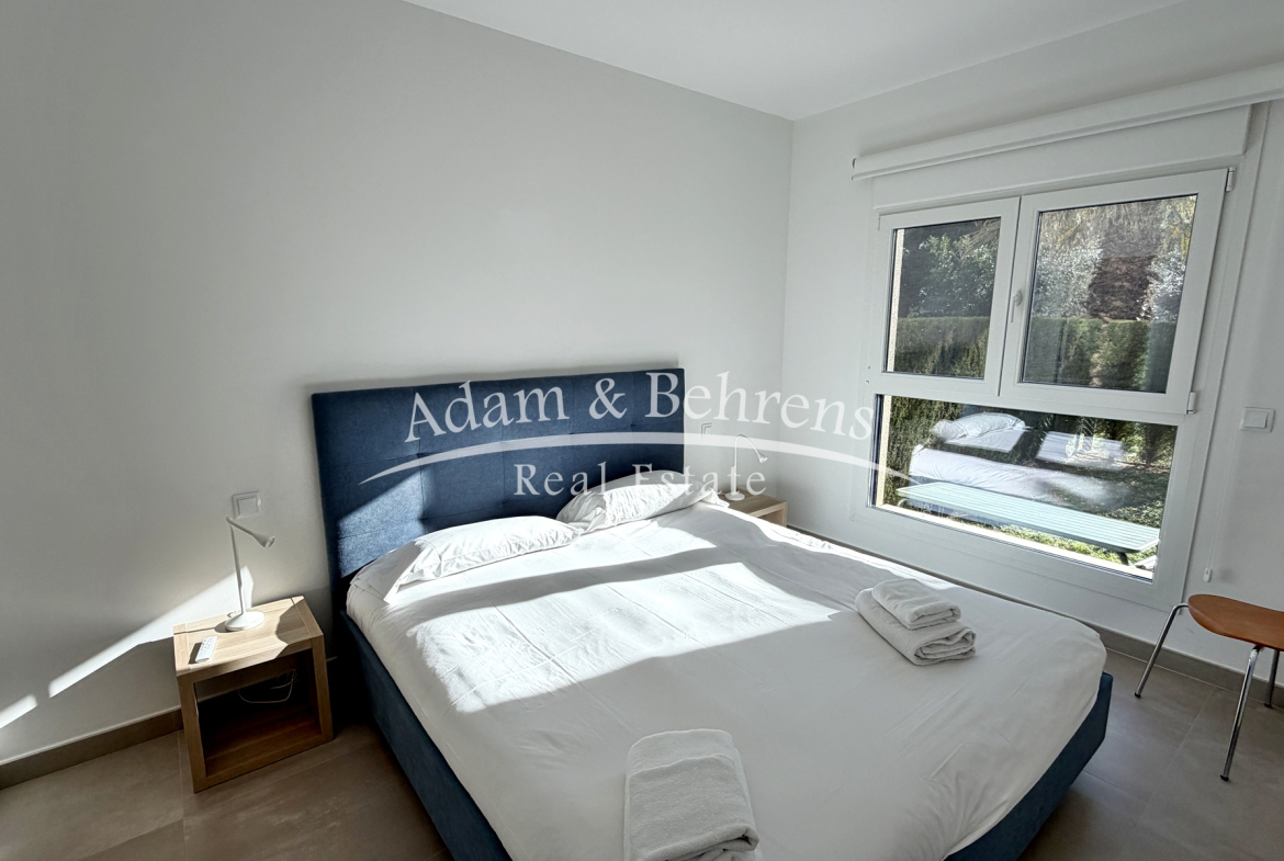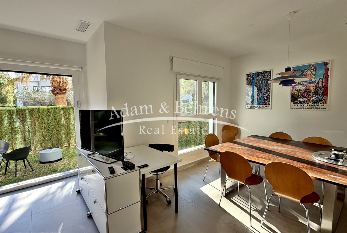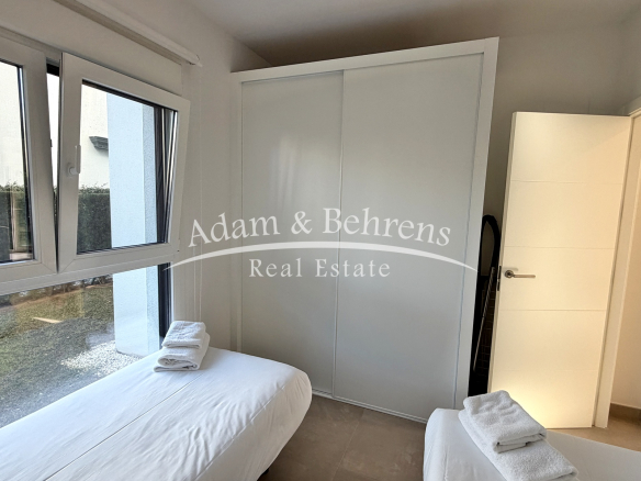 Diese neuwertige Erdgeschosswohnung überzeugt durch ihre moderne Architektur, helle Räume und eine funktionale Grundrissgestaltung. Der offene Wohn- und Essbereich mit integrierter Küche bildet das Herzstück der Wohnung und bietet direkten Zugang zur Terrasse und zum privaten Gartenbereich und den daran anschließenden Gemeinschaftspool.