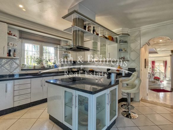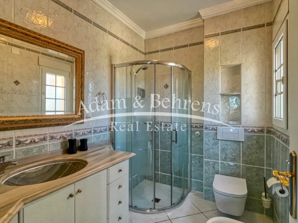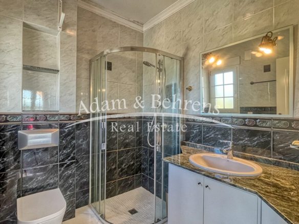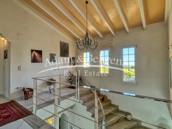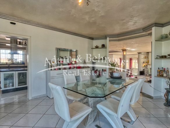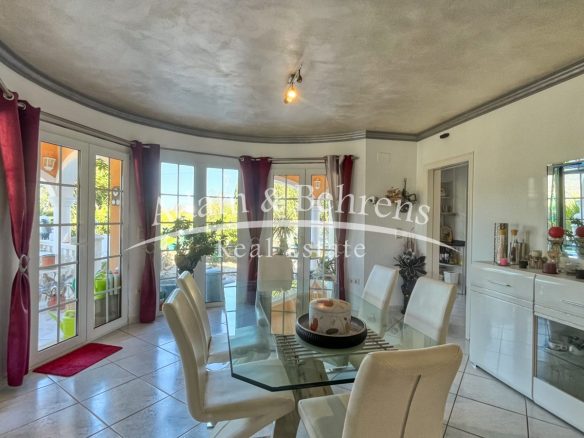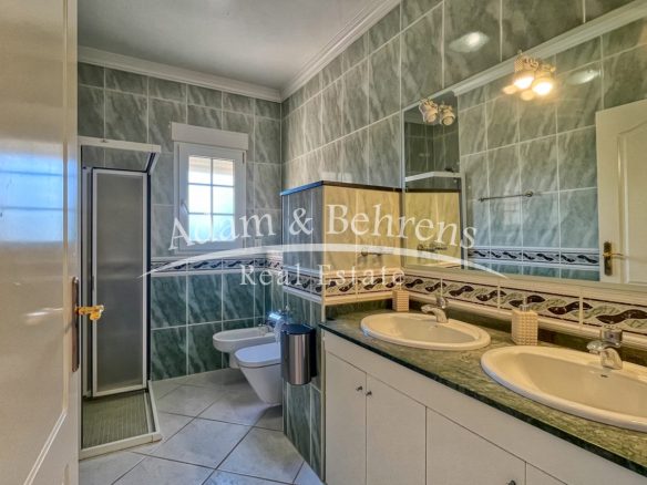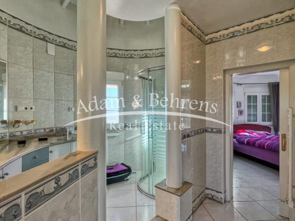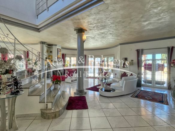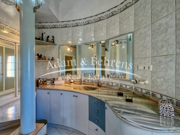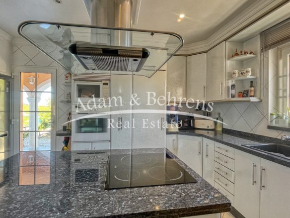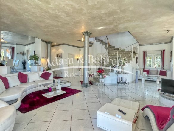 – Villa (402 m²) mit großem Wohnzimmer, Esszimmer, hochwertiger Küche, 3 Schlafzimmern mit 4 Bädern, Balkonen und Terrasse, Weinkeller mit Studio, Abstellräumen, Buero und Garage