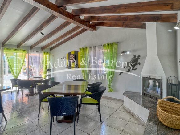 – Hotel (203 m²) mit 6 Schlafzimmern und Bädern (4x Dreibett, 2x Doppel), Restaurant/Bar, Speisesaal und Selbstbedienungsküche