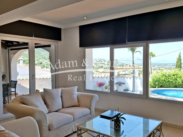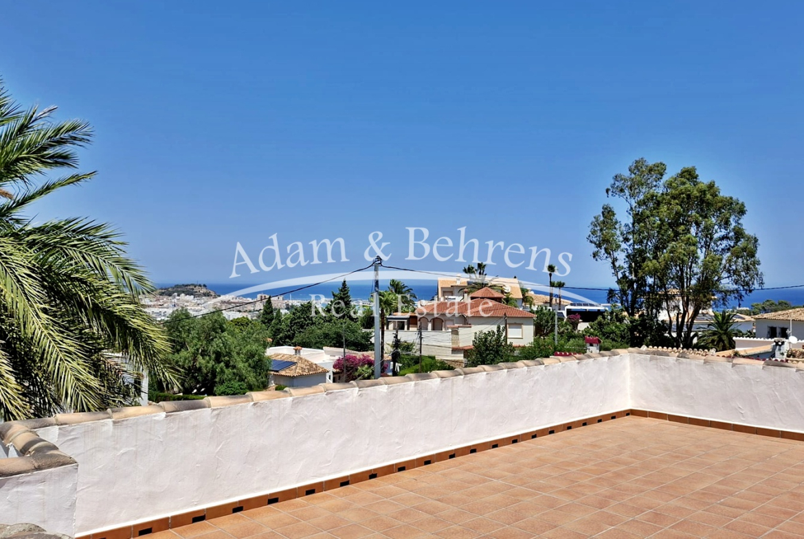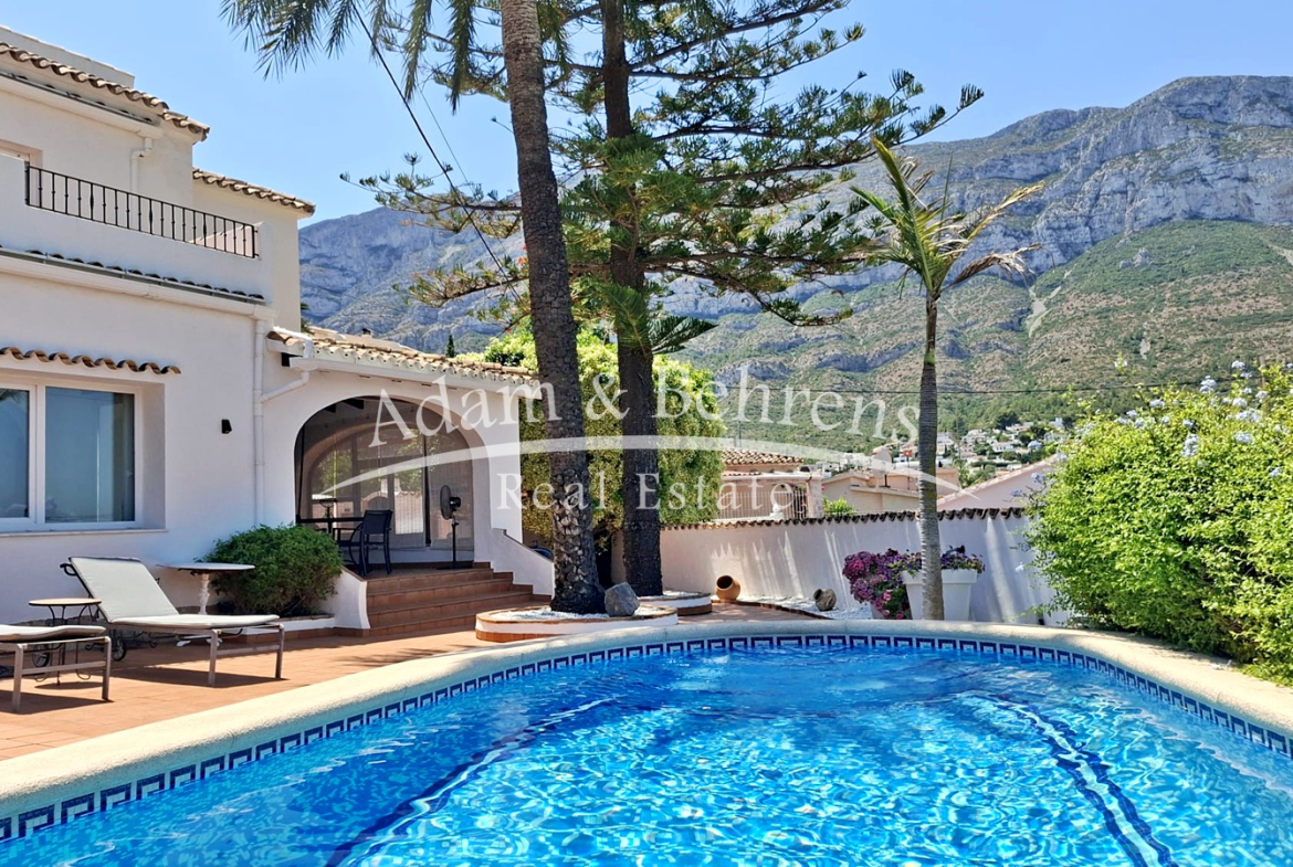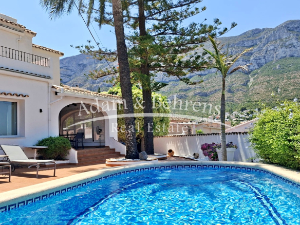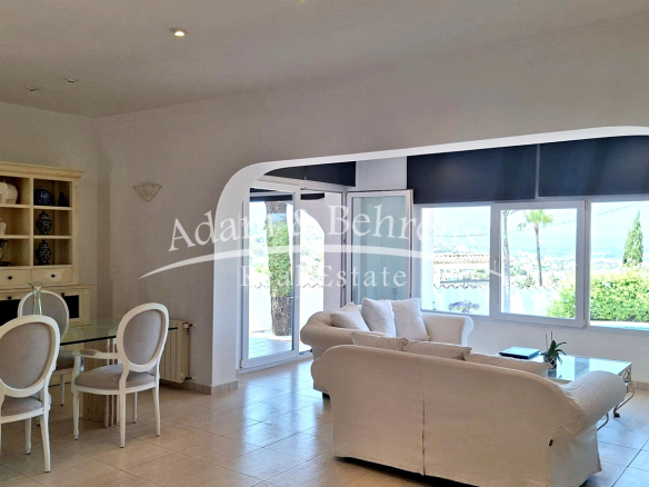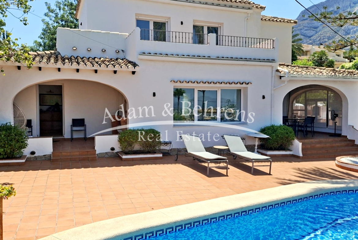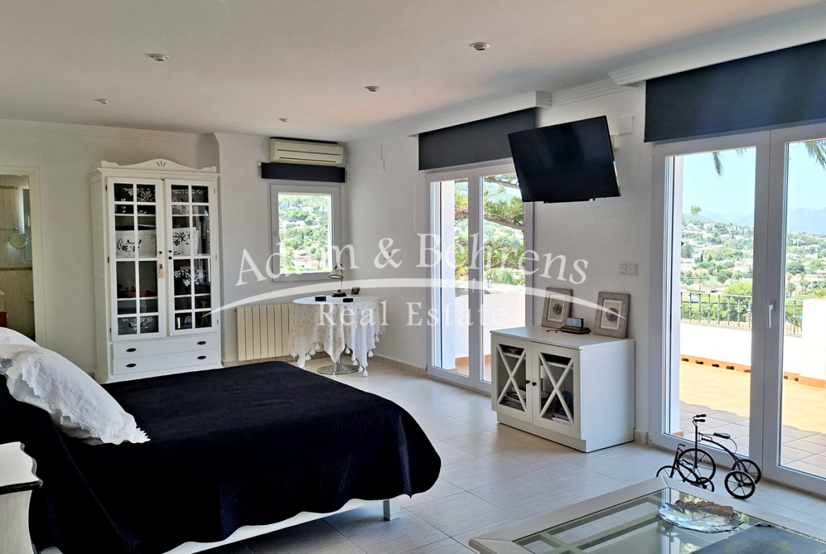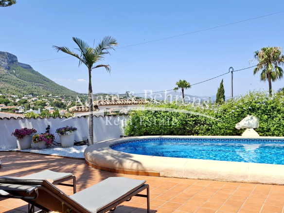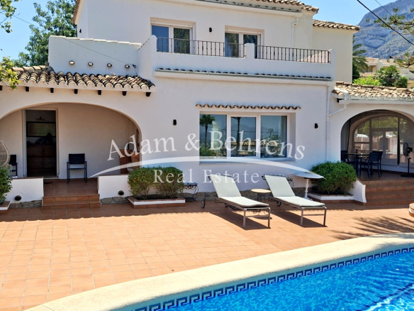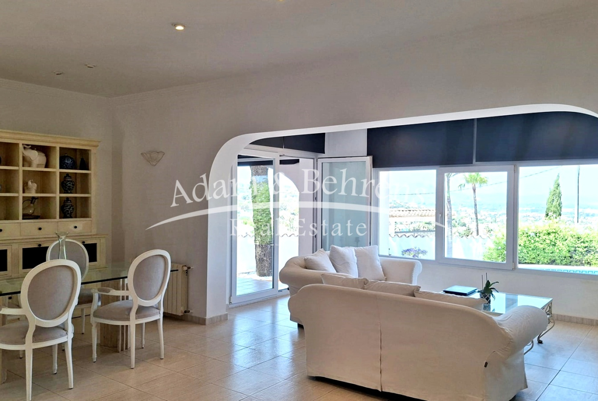 Erleben Sie mediterranen Luxus in einer der schönsten Wohnlagen von Dénia! Diese stilvolle Villa auf einem großzügigen Grundstück bietet Ihnen einen traumhaften Panoramablick auf das Meer, die Berge und das Castillo von Dénia – nur wenige Minuten vom Stadtzentrum und den Stränden entfernt.