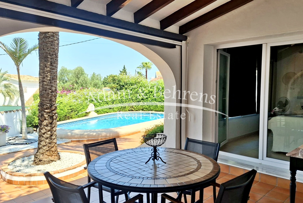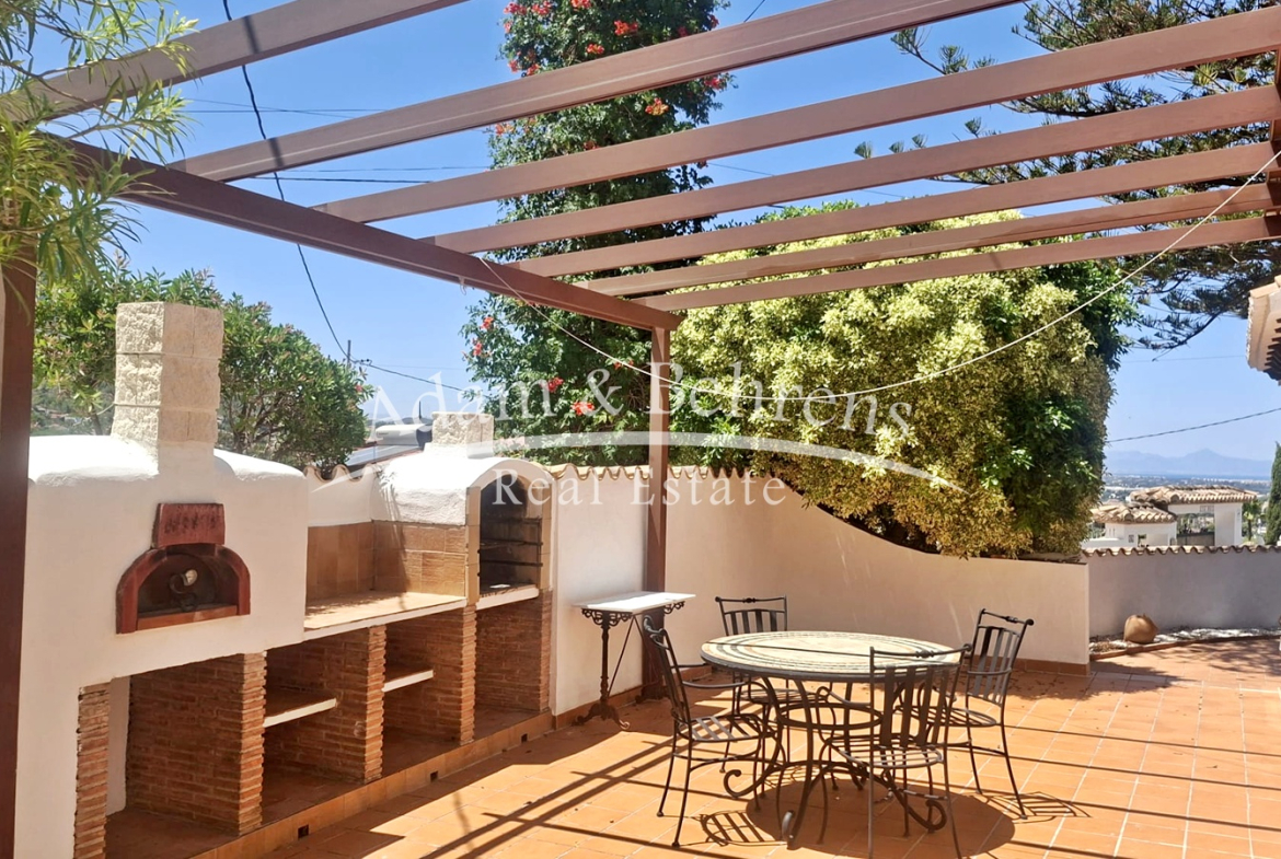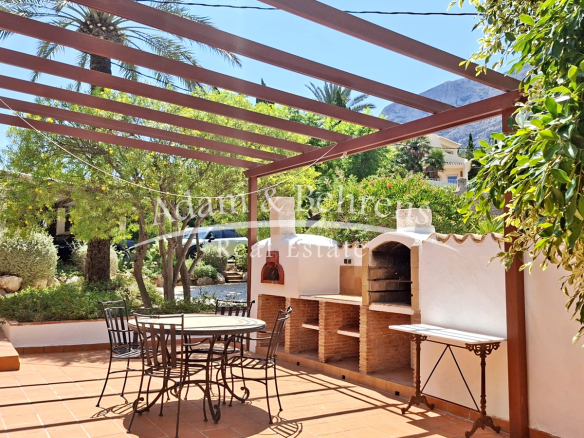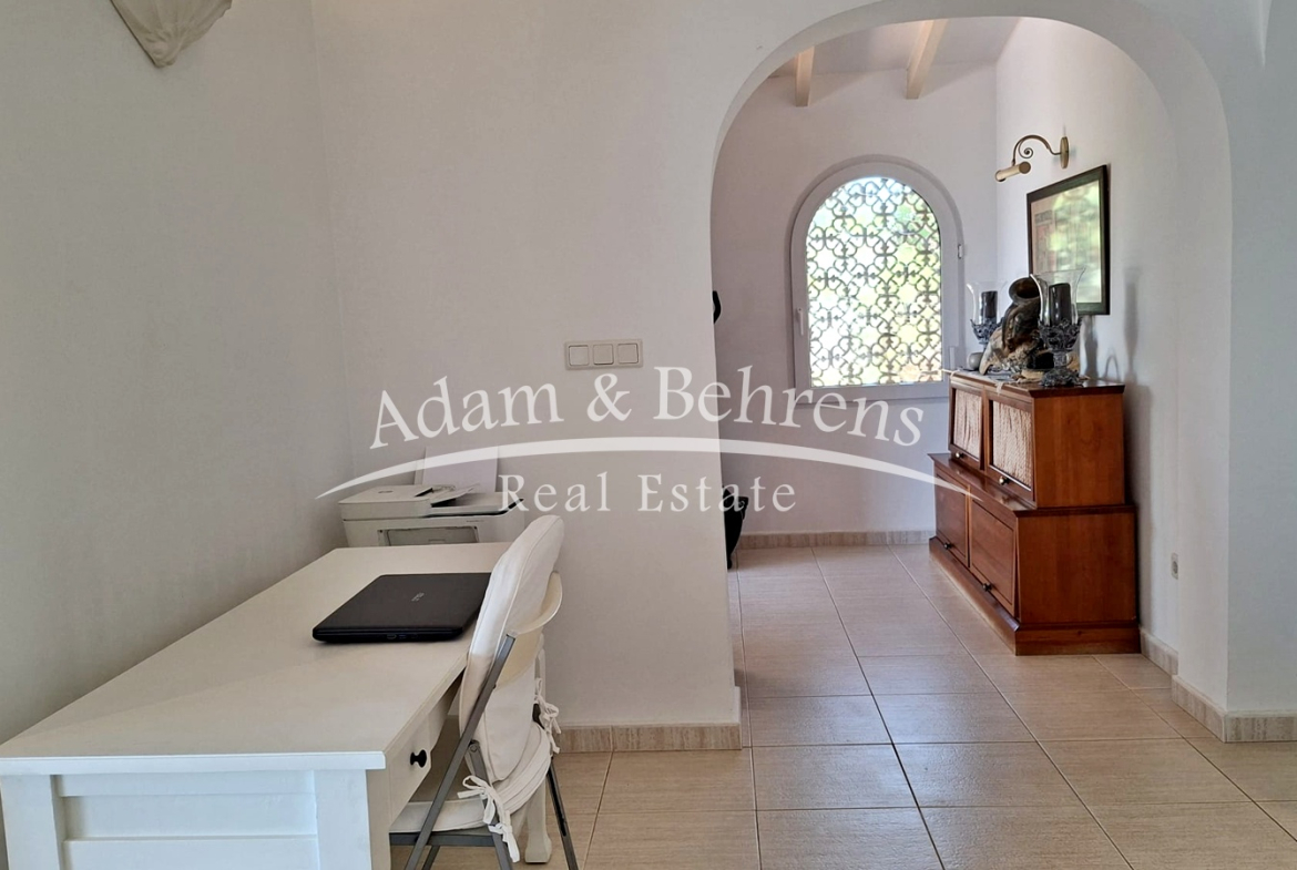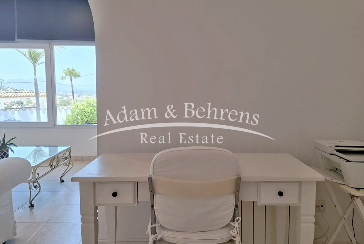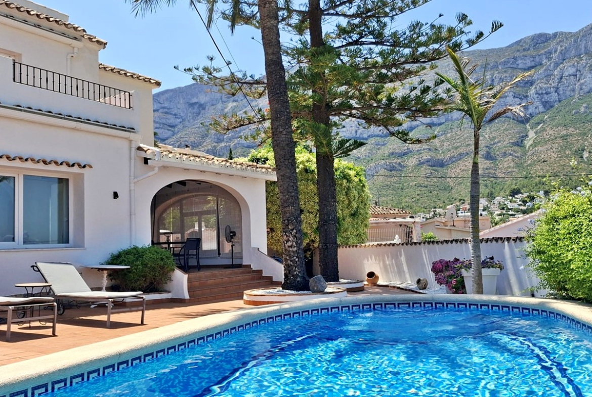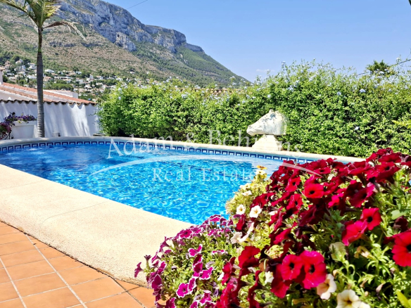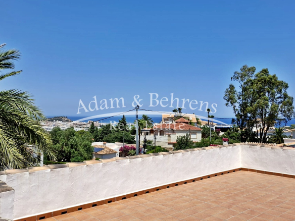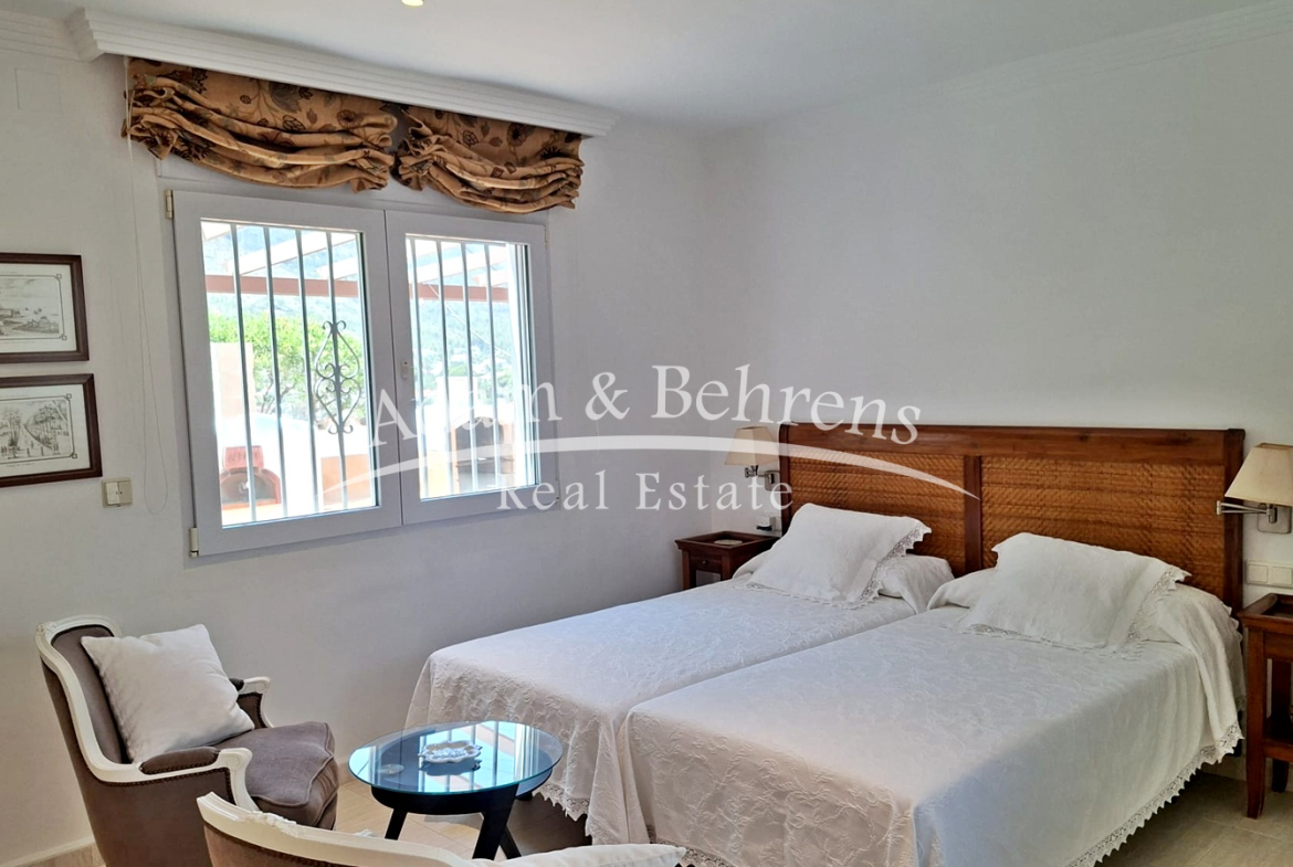 Erleben Sie mediterranen Luxus in einer der schönsten Wohnlagen von Dénia! Diese stilvolle Villa auf einem großzügigen Grundstück bietet Ihnen einen traumhaften Panoramablick auf das Meer, die Berge und das Castillo von Dénia – nur wenige Minuten vom Stadtzentrum und den Stränden entfernt.