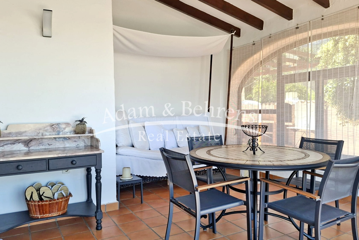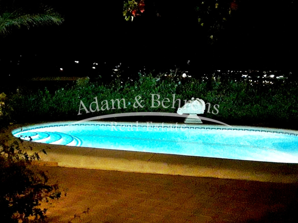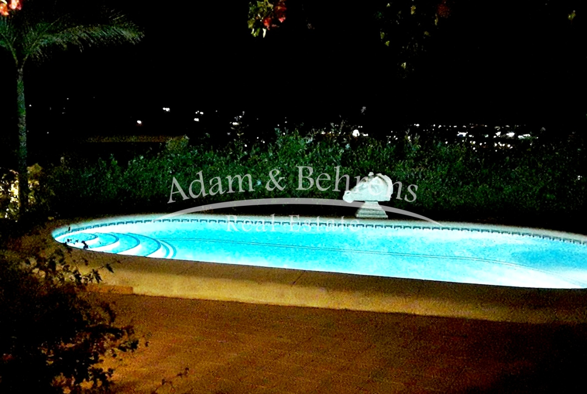 Das Grundstück ist liebevoll angelegt und bietet verschiedene Terrassen, sonnige und schattige Sitzplätze sowie einen gepflegten Garten mit Obstbäumen und automatischer Bewässerung. Der private Pool (ca. 4 × 8 m) mit Sonnenterrasse lädt zum Entspannen ein.