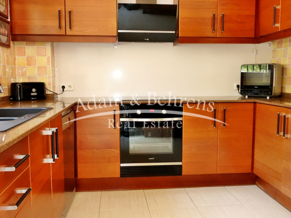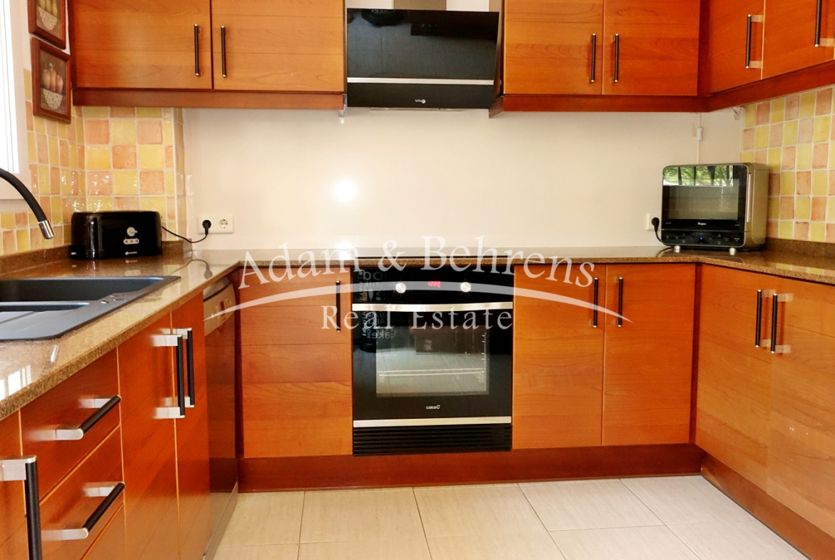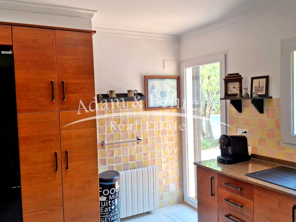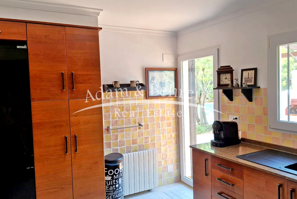 Die separate, voll ausgestattete Küche verfügt über einen direkten Zugang zur überdachten Terrasse mit BBQ-Bereich und Pizzaofen – perfekt für gesellige Abende im Freien.