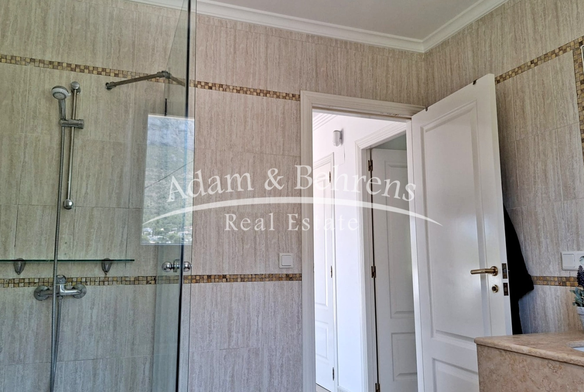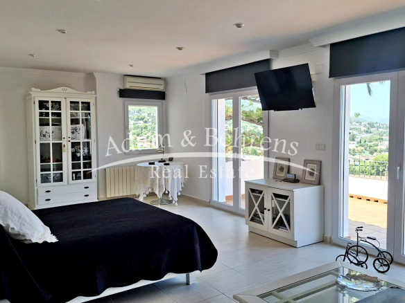 Hier befindet sich der exklusive Masterbereich mit Schlafzimmer, Ankleidezimmer (optional nutzbar als viertes Schlafzimmer) und einem großen Badezimmer en suite. Von der privaten Terrasse genießen Sie einen beeindruckenden Panoramablick auf das Meer, den Montgó und die Stadt Dénia.